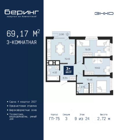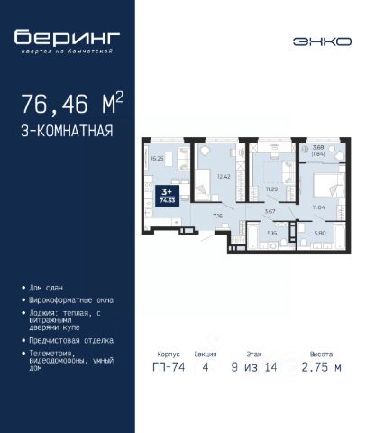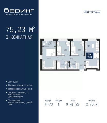 Эксклюзивные ипотечные условия. Квартира в рассрочку без процентов от застройщика. Дом будет сдан в 4 квартале 2025 года. Звоните, мы вам все подробно расскажем. 3-комн. квартира с предчистовой отделкой в ЖК "Республики 205" на 9 этаже. Общая площадь: 78.15 кв.м., жилая: 37.4 кв.м., площадь просторной кухни-гостиной: 18.6 кв.м. Квартира - распашонка, без проходных комнат, окна выходят на paзные стороны дома. В квартире один балкон и одна лоджия, один совмещенный и один раздельный санузел. Высота потолков 2.6 м. Купить квартиру можно с помощью программ покупки от застройщика Брусника: - ипотека по эксклюзивной ставке с помощью в получении положительного кредитного решения через сервис ипотечный брокер; - квартиры в рассрочку без процентов от застройщика Брусника; - обмен квартиры на новую. Получить одобрение ипотеки или рассрочку, а также осуществить обмен квартир можно онлайн. Дом монолитный, многоподъездный, переменной этажности, от 9 до 17 этажей. Квартира находится в 9-й секции высотой 9 этажей в корпусе 1. На этаже 8 квартир. В подъезде 1 грузовой лифт. Начало строительства - 2 квартал 2023 года. Строительство завершено, дом сдан в 4 квартале 2025 года. Оформление сделки по договору купли-продажи. Район Проект расположен в границах улиц Пермякова, Энергетиков, Воровского и Республики. До центра города — 10 минут на машине. Рядом — автомобильная развязка на пересечении улиц Пермякова и Республики. В шаговой доступности есть школы, детские сады, поликлиники, крупный торговый центр, автовокзал и несколько скверов. Проект "Республики 205" — это проект комплексного развития территории, уникальный по своему наполнению. Переосмысляя бывшую территорию завода медицинского оборудования, мы создадим новое место силы — микрорайон, насыщенный деловой, развлекательной, рекреационной, игровой, образовательной и медицинской инфраструктурой. До каждого полезного сервиса здесь можно будет дойти за 15 минут. Локальными центрами "Республики 205" будут общественные пространства — скверы, парки, бульвары и площади. В границах нашего участка мы намерены разместить школу, рассчитанную на 1550 учеников, два детских сада на 300 мест и встроенный детский сад на 100 мест. В одном из цехов бывшего завода расположится креативный кластер "Кузница". Он станет площадкой для нескольких институций — галереи, лектория, книжного магазина-библиотеки, кинобара и точек креативного pop-up-ритейла. Пешеходные бульвары внутри района соединят между собой улицу ресторанов, детские и спортивные площадки, событийную площадь и летний кинотеатр. Идентификатор квартиры по базе застройщика: МЕД01-01-9-9. #2iglgd