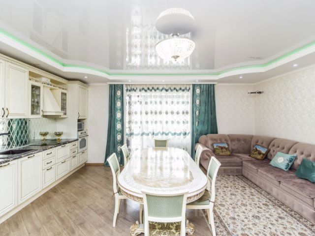Представляем вам 3х комнатную квартиру с кухней-гостиной в жилом комплексе Новин. Просторная кухня гостиная, 2 спальные зоны, мастерская (можно под детскую), в коридоре 3 функциональных встроенных шкафа (1-входная зона, 2-обувной шкаф, 3-шкаф для хранения полотенец, постельного белья, пледов, подушек и т.д.), 2 санузла. Три окна выходят во двор, одно окно на другую сторону. В квартире установлены датчики теплого пола, кондиционер, счетчики на холодную и горячую воду, электроснабжение, отопление, система телеметрии - передача данных по потреблению воды, электричества, отопления автоматически передаются в управляющую компанию.
