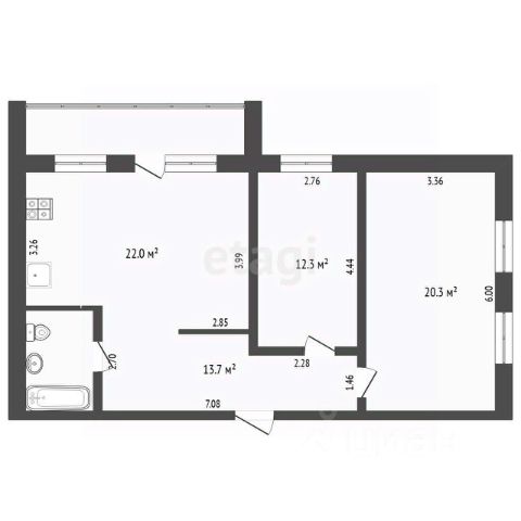 Продается функциональная эргономичная квартира 3+ площадью 98,5 кв.м с тремя спальнями 20/14/14 кв.м и кухней гостиной 33 кв.м, современный светлый ремонт.