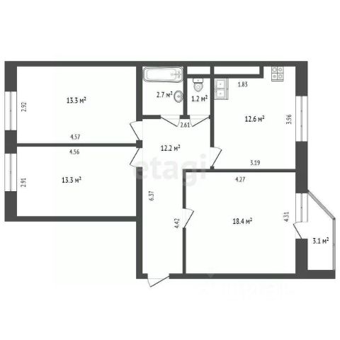 - три изолированных спальни: 11м2, 13м2, 19м2.
