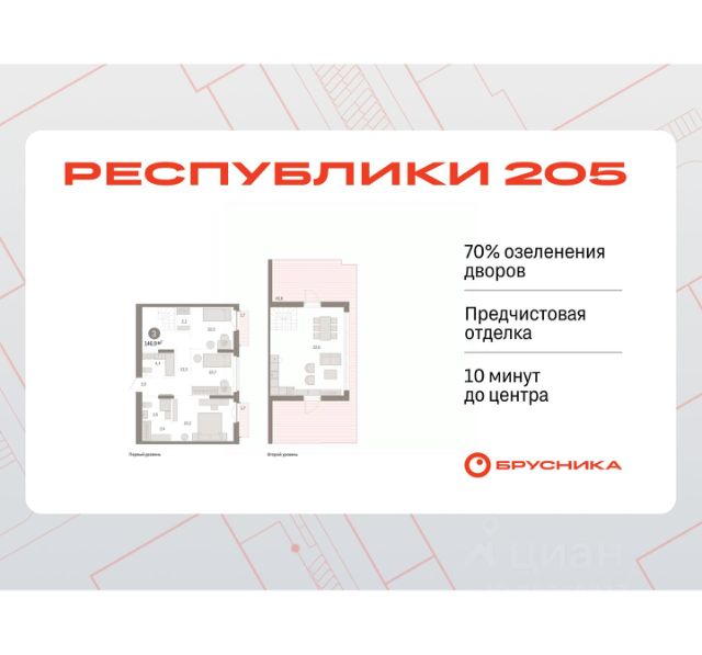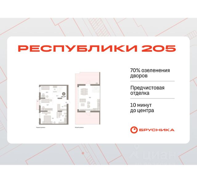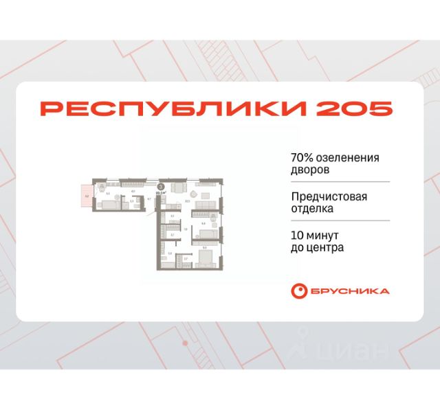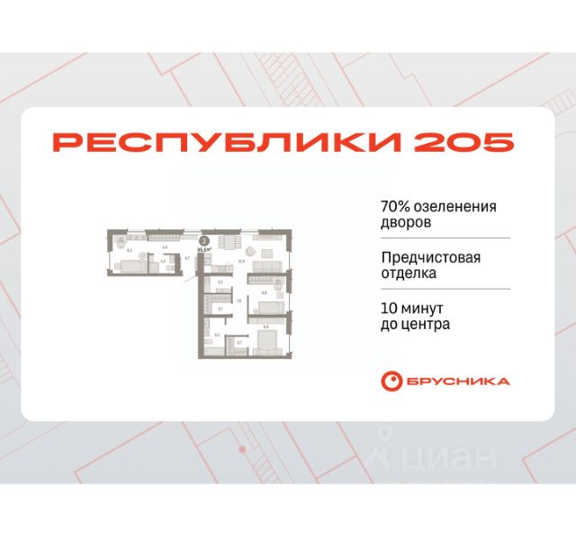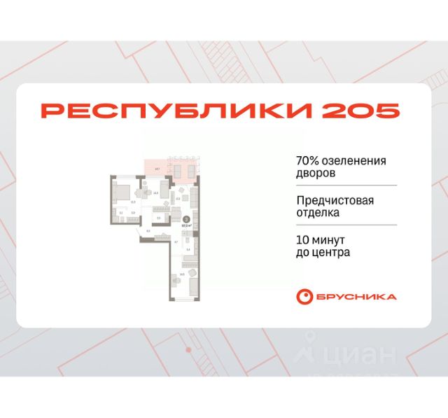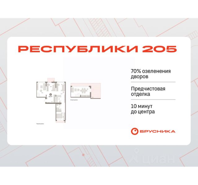 Квартира в счёт первоначального взноса по программе обмена. Звоните, мы вам все подробно расскажем! 3-комн. квартира с предчистовой отделкой в ЖК "Республики 205" на 2 этаже. Общая площадь: 74.95 кв.м., жилая: 38.6 кв.м., площадь просторной кухни-гостиной: 22.8 кв.м. Угловая квартира, идеально подойдет любителям тишины и панорамных видов. В квартире один совмещенный санузел. Высота потолков 2.7 м. Купить квартиру можно с помощью программ покупки от застройщика Брусника: - ипотека по эксклюзивной ставке с помощью в получении положительного кредитного решения через сервис ипотечный брокер; - квартиры в рассрочку без процентов от застройщика Брусника; - обмен квартиры на новую. Получить одобрение ипотеки или рассрочку, а также осуществить обмен квартир можно онлайн. Дом монолитный, многоподъездный, переменной этажности, от 7 до 16 этажей. Квартира находится в 1-й секции высотой 9 этажей в корпусе 2. На этаже 10 квартир. В подъезде 1 грузовой лифт. Начало строительства - 1 квартал 2024 года. Окончание строительства - 1 квартал 2026 года. Оформление сделки по договору долевого участия. Район Проект расположен в границах улиц Пермякова, Энергетиков, Воровского и Республики. До центра города — 10 минут на машине. Рядом — автомобильная развязка на пересечении улиц Пермякова и Республики. В шаговой доступности есть школы, детские сады, поликлиники, крупный торговый центр, автовокзал и несколько скверов. Проект "Республики 205" — это проект комплексного развития территории, уникальный по своему наполнению. Переосмысляя бывшую территорию завода медицинского оборудования, мы создадим новое место силы — микрорайон, насыщенный деловой, развлекательной, рекреационной, игровой, образовательной и медицинской инфраструктурой. До каждого полезного сервиса здесь можно будет дойти за 15 минут. Локальными центрами "Республики 205" будут общественные пространства — скверы, парки, бульвары и площади. В границах нашего участка мы намерены разместить школу, рассчитанную на 1550 учеников, два детских сада на 300 мест и встроенный детский сад на 100 мест. В одном из цехов бывшего завода расположится креативный кластер "Кузница". Он станет площадкой для нескольких институций — галереи, лектория, книжного магазина-библиотеки, кинобара и точек креативного pop-up-ритейла. Пешеходные бульвары внутри района соединят между собой улицу ресторанов, детские и спортивные площадки, событийную площадь и летний кинотеатр. Идентификатор квартиры по базе застройщика: РСП-02-1-1. #Z3FEEe