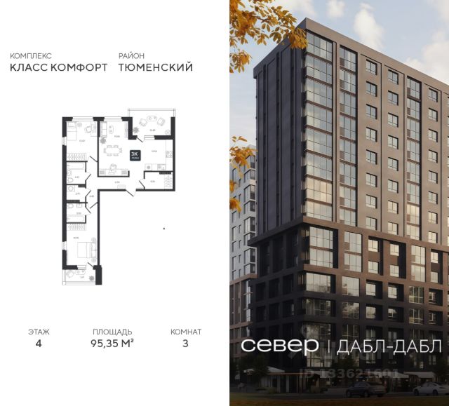 Продаётся квартира площадью 94.95 м2 в жилом комплексе "Дабл-Дабл". Квартира находится на 8 этаже, жилая площадь квартиры 42.46 м2, площадь просторной кухни — 13.54 м2. Среди особенностей планировки — изолированные комнаты с окнами на одну сторону, 1 совмещённый санузел. Срок сдачи — II кв. 2028 Жилой комплекс "Дабл-Дабл" — это: - проект комфорт-класса на Московском тракте - дома высотой 15 этажей - квартиры от 1-комнатных до 2-уровневых Окружение На границе жилого комплекса — живописный лес. Достаточно открыть окна, чтобы впустить в комнаты ароматы зелени, прохладу и чистый воздух. Благоустройство Юные жители оценят игровые площадки и воркаут-зоны. Любителям неспешных прогулок понравится 2-уровневый променад с панорамным видом и навесами. Лобби Помещения встречают дизайнерскими интерьерами с уютными лаунж-зонами, где удобно подождать курьера или просто сделать паузу перед возвращением домой. Колясочные Возвращайтесь налегке после прогулки с малышом — оставить коляску можно в специальном помещении на первом этаже. Кладовые Благодаря индивидуальным помещениям на техническом этаже сезонные и габаритные вещи будут на своём месте. 2-уровневые квартиры Просторная гостиная и кухня располагаются на первом этаже, спальня и кабинет — на втором. Почувствуйте, как жизнь выходит на новый уровень комфорта и приватности. Панорамное остекление Окна в пол наполняют комнаты светом и стирают границы между домом и природой. Встречайте рассветы или наслаждайтесь огнями вечернего города. Отделка Ровные стены, подготовленные полы и проведённые коммуникации — мы взяли на себя самые грязные и трудоёмкие этапы ремонта. Квартира станет чистым холстом, где легко создать интерьер в любом стиле.