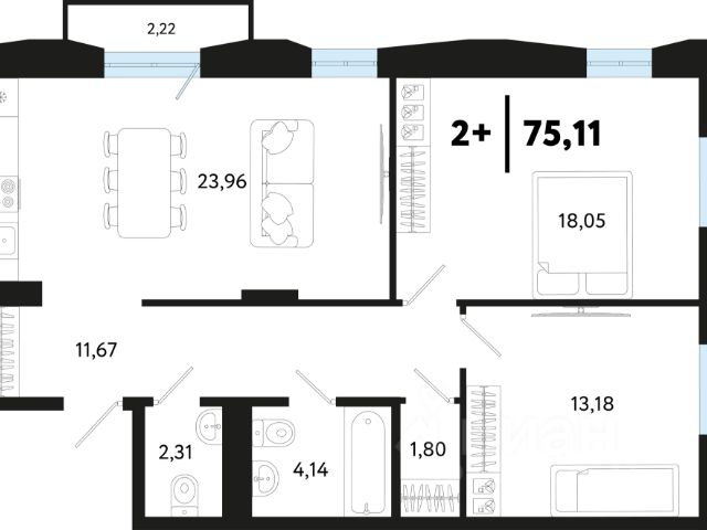 Продается 2-комн. квартира в ЖК "Беринг" на 16 этаже. Квартира без отделки, после получения ключей можно делать ремонт. Общая площадь: 62.55 кв.м., жилая: 26.04 кв.м., площадь просторной кухни-столовой: 21.74 кв.м. Угловая квартира, идеально подойдет любителям тишины и панорамных видов. В квартире одна лоджия, один раздельный санузел. Высота потолков 2.75 м.