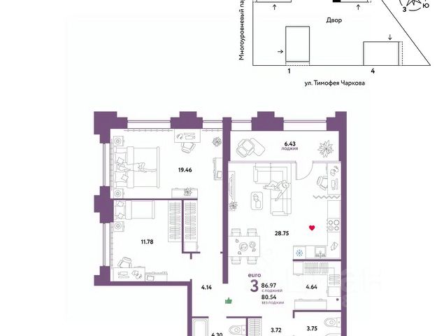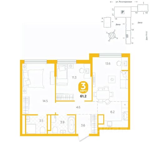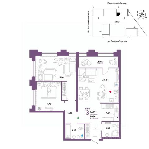Квартира располагается в ГК "Чистые Пруды" от "Паритет девелопмент". Это флагманский проект компании в Тюмени. Расположение вдали от шумных улиц и оживленного центра создает ощущение жизни на природе и окружает тишиной и спокойствием. Есть вся необходимая социальная и коммерческая инфраструктура: магазины и сфера услуг на первых этажах. Школы, сады, поликлиника, парки в шаговой доступности. Квартал строится в районе Новой Лесобазы. Рядом выезд на объездную, что существенно экономит время. Поездка до центра города на автомобиле занимает 15-20 минут. Городские кварталы "Чистые Пруды" сформирован из домов переменной этажности и многоуровневых паркингов. Ввод 1 очереди строительства запланирован на II кв. 2028 года. Всё благоустройство квартала представлено двумя функциональными зонами: приватная внутри дворовая и общественная. Каждый закрытый двор имеет выход на единую променадную зону - бульвар. Концепция благоустройства основана на принципе модульности, что формирует основную идею приватности. Приватность проекта подчеркивает его особенный климат внутри. Модульное благоустройство позволит максимально эффективно использовать пространство двора и удовлетворить потребности различных категорий жителей. В квартирах базово выполнена улучшенная черновая отделка, которая включает в себя: выровненные стены, стяжка пола с шумоизоляцией, горизонтальная разводка отопления, установлены счетчики с телеметрией, окна с 5-камерным профилем и надежные входные двери. При желании можно добавить ремонт от застройщика и включить его в стоимость ипотеки, что позволит сэкономить на стройматериалах и переехать сразу после получения ключей. Характеристики квартиры: этаж - 12 количество комнат - 3 номер помещения - 248 площадь квартиры - 53,2 кв.мГармоничные пропорции и большие окна наполняют пространство светом, создавая уютную атмосферу. Умное зонирование позволяет удобно организовать как рабочую, так и жилую зоны, что особенно важно для современных жителей. Санузел спроектирован с учетом всех потребностей: здесь есть ванна и место для стиральной машины. Каждый метр квартиры используется с максимальной эффективностью, что делает эту планировку отличным выбором для тех, кто ценит комфорт и удобство.