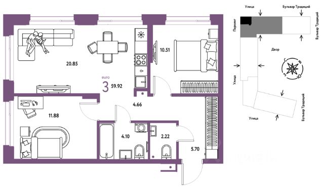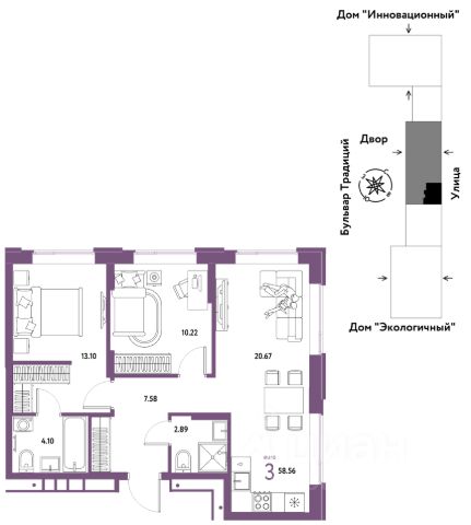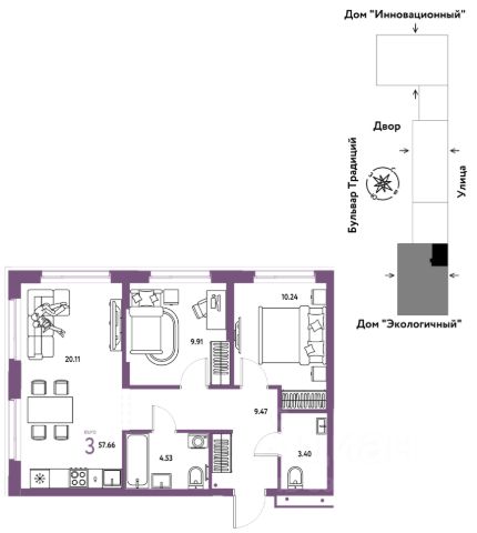 Объявление от застройщика Страна Девелопмент. Покупка квартиры защищена банком. Продается 3комнатная квартира на 11 этаже от застройщика Страна Девелопмент. Площадь квартиры 57,91 кв. м. ЖК "ДОМАШНИЙ" Жилой комплекс "Домашний" это первый цифровой район в Сибири, где жители заходят в парадные по Face ID, автомобили заезжают в паркинг по сканированию номера, а лифт автоматически спускается на первый этаж при открытии домофона. Даже во дворах — USB-розетки и беседки с подогревом. ПРЕИМУЩЕСТВА -Школа, зеленый сквер и пешеходный бульвар прямо внутри квартала -Закрытые дворы у каждого дома для активного и спокойного отдыха -Охрана, видеонаблюдение 24/7 и доступ к камерам в мобильном приложении -Сквозные парадные с прозрачными входными группами, колясочными и велосипедными -Паркинг с въездом по считыванию номеров, системой контроля выбросов CO2, тележками для покупок и велопарковкой -Торговая галерея на первом этаже дома ОТДЕЛКА Квартиры сдаются с предчистовой отделкой: произведена разводка электричества и отопления, выполнена стяжка пола, стены выровнены "под маяк", установлены розетки, выключатели и радиаторы. ДИЗАЙНЕРСКАЯ ОТДЕЛКА При покупке квартиры в ЖК "Домашний" можно включить стоимость ремонта в ипотеку. Пять вариантов на выбор: Хлопковая нить, Серый шторм, Белый камень, Шалфей, Голубой вереск. СПОСОБЫ ПОКУПКИ Сотрудники "Страна Девелопмент" будут сопровождать вас на каждом этапе сделки, помогут получить одобрение по ипотеке или снизить ежемесячный платеж. - ипотека - материнский капитал -100% оплата наличными