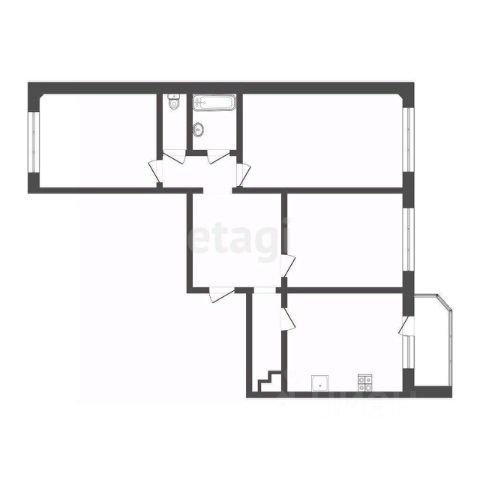 Квартира с кухней-гостиной и тремя спальнями в кварталах "На Минской". Особенности планировки: вид во двор, лоджия, разнесённые спальни, предчистовая отделка, мастер-спальня, постирочная, балкон.
