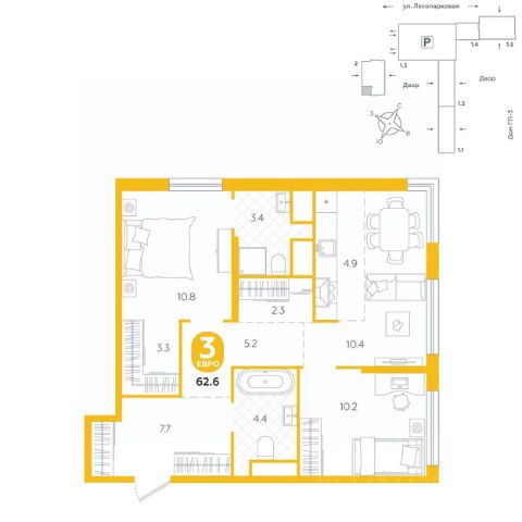 Квартира располагается в ГК "Чистые Пруды" от "Паритет девелопмент". Это флагманский проект компании в Тюмени. Расположение вдали от шумных улиц и оживленного центра создает ощущение жизни на природе и окружает тишиной и спокойствием. Есть вся необходимая социальная и коммерческая инфраструктура: магазины и сфера услуг на первых этажах. Школы, сады, поликлиника, парки в шаговой доступности. Квартал строится в районе Новой Лесобазы. Рядом выезд на объездную, что существенно экономит время. Поездка до центра города на автомобиле занимает 15-20 минут. Городские кварталы "Чистые Пруды" сформирован из домов переменной этажности и многоуровневых паркингов. Ввод 1 очереди строительства запланирован на II кв. 2028 года. Всё благоустройство квартала представлено двумя функциональными зонами: приватная внутри дворовая и общественная. Каждый закрытый двор имеет выход на единую променадную зону - бульвар. Концепция благоустройства основана на принципе модульности, что формирует основную идею приватности. Приватность проекта подчеркивает его особенный климат внутри. Модульное благоустройство позволит максимально эффективно использовать пространство двора и удовлетворить потребности различных категорий жителей. В квартирах базово выполнена улучшенная черновая отделка, которая включает в себя: выровненные стены, стяжка пола с шумоизоляцией, горизонтальная разводка отопления, установлены счетчики с телеметрией, окна с 5-камерным профилем и надежные входные двери. При желании можно добавить ремонт от застройщика и включить его в стоимость ипотеки, что позволит сэкономить на стройматериалах и переехать сразу после получения ключей. Характеристики квартиры: этаж - 12 количество комнат - 3 номер помещения - 248 площадь квартиры - 53,2 кв.мГармоничные пропорции и большие окна наполняют пространство светом, создавая уютную атмосферу. Умное зонирование позволяет удобно организовать как рабочую, так и жилую зоны, что особенно важно для современных жителей. Санузел спроектирован с учетом всех потребностей: здесь есть ванна и место для стиральной машины. Каждый метр квартиры используется с максимальной эффективностью, что делает эту планировку отличным выбором для тех, кто ценит комфорт и удобство.