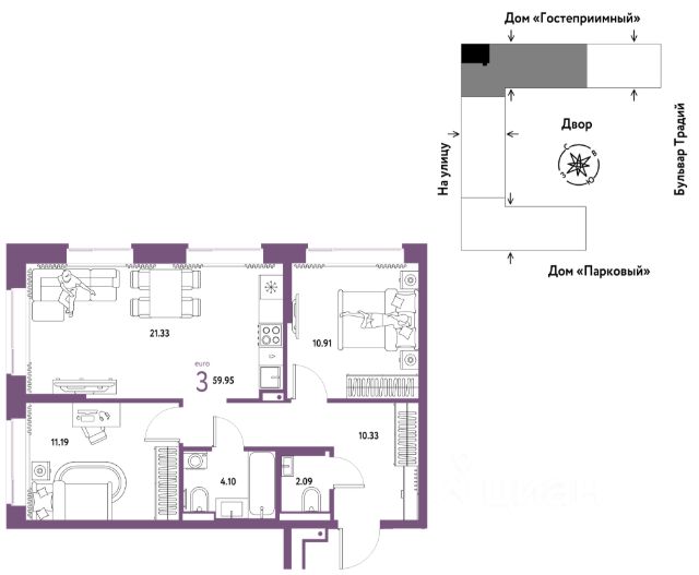 Объявление от застройщика Страна Девелопмент. Покупка квартиры защищена банком. Продается 3комнатная квартира на 12 этаже от застройщика Страна Девелопмент. Площадь квартиры 55,84 кв. м. О ПРOЕКТЕ Mикpорайон "Домaшний" — этo 6 очередей стpоитeльcтвa, 24 дома пеpемeннoй этажнoсти. Каждый дом уникальный. Внутри микрорайона появится огромный пешеходный бульвар — бульвар Традиций. Центром притяжения станут открытые пространства для отдыха жителей и гостей микрорайона, которые легко меняются под сезонные сценарии отдыха: новогодняя елка, ярмарки, кинопоказы и т.д. У каждого дома обустроен приватный двор с зонами для активного и спокойного отдыха. В активной зоне детские разновозрастные площадки с горками, песочницами и качелями, воркаут-зоны. В спокойной — скамейки, мини-амфитеатры, закрытые перголы. Уютной атмосферу сделает обильное озеленение и освещение "домашними" торшерами. ОТДЕЛКА Квартиры сдаются с предчистовой отделкой. Все грязные работы выполнены: произведена разводка электричества и отопления; выполнена стяжка пола; стены выровнены "под маяк". В квартире установлены розетки, выключатели и радиаторы. На входе — надежная стальная дверь. Вам остается только выбрать материалы и начать ремонт Доступна опция "Ремонт от застройщика". Стоимость можно включить в ипотеку. КУХНЯ С ТЕХНИКОЙ Теперь дополнительно к ремонту можно заказать кухню со встроенной техникой. Эргономику и функциональное наполнение разработали под каждую планировку. ПОЛНАЯ МЕБЛИРОВКА Больше не нужно тратить время даже на подбор, доставку и сборку мебели.Вы можете включить в стоимость квартиры с ремонтом полную меблировку. - Что входит в меблировку? - Кухня с техникой и сантехникой - Диван - Кровать - Шкаф в спальне - Шкаф в прихожей На консультации менеджер подскажет, какие акции действуют, и как получить одобрение по ипотеке с низкой ставкой. Более подробная информация по телефону. Застройщик ООО СЗ "Страна Запад". Проектные декларации на сайте наш.дом.рф.