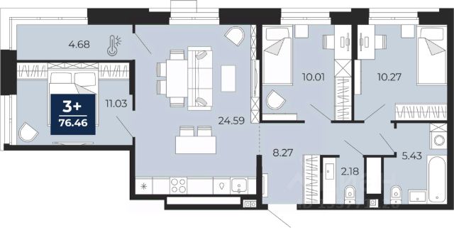 Спешите забронировать на этих условиях, срок предложения ограничен! Стоимость квартиры указана со скидкой, ваша экономия составит 473,000 руб. Информация по телефону, наши менеджеры вам все расскажут. 3-комн. квартира с предчистовой отделкой в ЖК "Мириады" на 2 этаже. Общая площадь: 76.46 кв.м., жилая: 31.31 кв.м., площадь просторной кухни-столовой: 24.59 кв.м. Квартира угловая, очень светлая, естественная вентиляция при открытии окон. В квартире одна лоджия, один совмещенный и один раздельный санузел. Высота потолков 2.7 м. Дом монолитный, черырехподъездный, переменной этажности, от 13 до 16 этажей. Квартира находится в 4-й секции высотой 16 этажей в корпусе ГП-72.106. На этаже 6 квартир. В подъезде 1 пассажирский и 1 грузовой лифт. Окончание строительства - 3 квартал 2028 года. Оформление сделки по договору долевого участия. Вселенная бесконечных историй. Ранее невиданный Тюмени масштаб: территория 240 гектаров и 1 650 000 м² застройки. Мириады это город масштабных перемен и больших возможностей. Город зеленых рощ и зеркальных озер. Город для работы, учебы и развлечений. Город для детей и их родителей. Город для всех и каждого. Проект расположен в районе Мыс рядом с ТРЦ "Тюмень Сити Молл" в границах улицы Тимофея Чаркова, Тобольского тракта и объездной дороги. Срок полного освоения территории - до 2034 года. #2MdaWC Продается 3-комнатная квартира в монолитном доме в Тюменской области.
