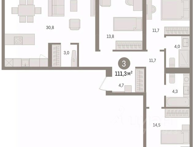 Трехкомнатная квартира от застройщика с предчистовой отделкой в ЖК "Зарека" на 7 этаже. Общая площадь: 77.25 кв.м. Высота потолков 2.7 м. Дом монолитный, многоподъездный, переменной этажности, от 7 до 16 этажей. Квартира находится в 7-й секции высотой 7 этажей в корпусе 2-1. На этаже 8 квартир. В подъезде 1 грузовой лифт. Окончание строительства - 2 квартал 2029 года. Оформление сделки по договору долевого участия. Квартира с кухней-гостиной и тремя спальнями в жилом районе "Зарека". Особенности планировки: балкон, вид во двор, второй санузел, мастер-спальня, предчистовая отделка, рабочий кабинет, разнесённые спальни. О доме Замкнутый квартал высотой 8 этажей с 16-ти этажной башней-доминантой и двором на стилобате двухуровневого паркинга. Дом 2.1 сочетает в себе приемы классической и современной архитектуры. Выразительность достигается благодаря симметричной композиции фасада, чередование массинга идет за счет эркеров и подрезок. Фасады первых этажей выполнены из клинкерного кирпича, выше - штукатурные. Акцентом на фасаде являются металлические импосты окон, темно-серого цвета, который будет контрастировать со светлыми оттенками самого фасада. квартиры в нашей базе: ЗРК02.1-Ж7.7.7. Проект На планировочную структуру "Зареки" повлияла близость к автомобильному мосту Челюскинцев. Мы расположили жилые здания так, чтобы они постепенно удалялись от проезжей части. Приём напоминает лесенку: чем сильнее мост возвышается над участком застройки, тем дальше по отношению к нему стоят дома. Этот ступенчатый сдвиг позволил нам сформировать буфер между кварталами и оживлённой магистралью. Мы намерены высадить здесь высокие деревья и создать дополнительную защиту от дорожных шума и пыли. В границах нашего участка мы намерены разместить школу и два встроенных детских сада на 135 и 150 мест. Общественные пространства С севера на юг территорию будет пронизывать пешеходный бульвар. Мы мыслим это общественное пространство как главный центр притяжения. На нём будут сосредоточены основные детские игровые и спортивные зоны, места для встреч и спокойного отдыха. Он также сыграет роль мостика, ведущего к другим нашим проектам — "Европейскому кварталу" и "Дому у озера". Одна из базовых идей мастер-плана касается береговой линии. Сегодня озеленение этой территории носит стихииныи характер, а прямому доступу к Туре препятствует дамба. Мы хотим благоустроить пространства у воды и открыть их для людей. Архитекторы спроектировали систему многоярусных троп и спусков к реке, смотровые площадки и места для активного отдыха и пикников. #zme5u8