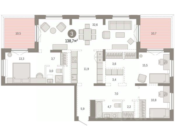 Квартира в счёт первоначального взноса по программе обмена. Двухуровневая квартира с кухней-гостиной и тремя спальнями в Октябрьском на Туре. Особенности планировки: гардеробная, без отделки, двухуровневая, вид во двор, панорамное остекление, свободная планировка, балкон, терраса на крыше. квартиры в нашей базе: ОКТ-10-3-3.8.5. Район Проект расположен на берегу реки, в одном из самых живописных и экологичных районов Тюмени. За последние годы облик района изменился. По соседству с индивидуальной застройкой выросли многоквартирные дома. При проектировании "Октябрьского на Туре" нашей приоритетной задачей стало сохранение природного ландшафта: мы постарались деликатно вписать в него современную архитектуру. Квартал удачно расположен с точки зрения дорожной инфраструктуры. На автомобиле путь до центра города составит 15 минут. Добраться до набережной и главных тюменских достопримечательностей можно и на общественном транспорте. В пешей доступности находится автобусная остановка. Проект По мастер-плану здесь будет восемь домов. Ядро застройки составляют замкнутые кварталы переменной этажности. Их высотность понижается по мере приближения к реке. На углах участка мы разместили башни-доминанты. Одной из достопримечательностей квартала станет парк на Туре — здесь появится зеленая зона протяженностью около 6 километров для пеших и велопрогулок. Смысловая ось квартала — широкая главная улица с высаженными вдоль неё высокими деревьями. Они создают тень и работают как шумо- и пылезащитные экраны. Это место сосредоточения основных пешеходных и транспортных потоков, на сторону которых мы ориентировали большинство коммерческих помещений. Отсюда жители могут свернуть на тихие соседские улицы и попасть на внутриквартальную площадь — ещё одну точку притяжения.Квартира в счёт первоначального взноса по программе обмена. #ZWlcbe