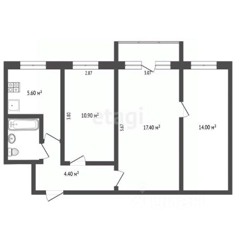 • ✅ Минимальная площадь: 57 м²