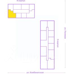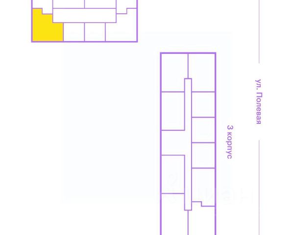 19-этажная архитектурная доминанта с эффектом паруса и камерная секция: французские балконы, сити-хаусы на 1-м этаже, 9 этажей в доме. Уступчатая структура формирует динамичный силуэт — новый акцент ул. Полевая. Металлические балконы создают градиент от тёмного к светлому, большие окна — панорамные виды на город.