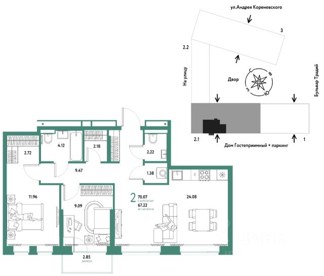 Новая квартира в ЖК "Домашний" напрямую от федеральной группы компаний "Страна Девелопмент". Финансовый партнер — банк "ДОМ.РФ". Продается 3комнатная квартира на 11 этаже от застройщика Страна Девелопмент. Площадь квартиры 54,77 кв. м. ЖК "ДОМАШНИЙ" Жилой комплекс "Домашний" это первый цифровой район в Сибири, где жители заходят в парадные по Face ID, автомобили заезжают в паркинг по сканированию номера, а лифт автоматически спускается на первый этаж при открытии домофона. Даже во дворах — USB-розетки и беседки с подогревом. ПРЕИМУЩЕСТВА -Школа, зеленый сквер и пешеходный бульвар прямо внутри квартала -Закрытые дворы у каждого дома для активного и спокойного отдыха -Охрана, видеонаблюдение 24/7 и доступ к камерам в мобильном приложении -Сквозные парадные с прозрачными входными группами, колясочными и велосипедными -Паркинг с въездом по считыванию номеров, системой контроля выбросов CO2, тележками для покупок и велопарковкой -Торговая галерея на первом этаже дома ОТДЕЛКА Квартиры сдаются с предчистовой отделкой: произведена разводка электричества и отопления, выполнена стяжка пола, стены выровнены "под маяк", установлены розетки, выключатели и радиаторы. ДИЗАЙНЕРСКАЯ ОТДЕЛКА При покупке квартиры в ЖК "Домашний" можно включить стоимость ремонта в ипотеку. Пять вариантов на выбор: Хлопковая нить, Серый шторм, Белый камень, Шалфей, Голубой вереск. СПОСОБЫ ПОКУПКИ Сотрудники "Страна Девелопмент" будут сопровождать вас на каждом этапе сделки, помогут получить одобрение по ипотеке или снизить ежемесячный платеж. - ипотека - материнский капитал -100% оплата наличными
