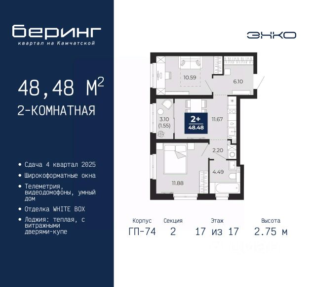 Квартира располагается в ГК "Чистые Пруды" от "Паритет девелопмент". Это флагманский проект компании в Тюмени. Расположение вдали от шумных улиц и оживленного центра создает ощущение жизни на природе и окружает тишиной и спокойствием. Есть вся необходимая социальная и коммерческая инфраструктура: магазины и сфера услуг на первых этажах. Школы, сады, поликлиника, парки в шаговой доступности. Квартал строится в районе Новой Лесобазы. Рядом выезд на объездную, что существенно экономит время. Поездка до центра города на автомобиле занимает 15-20 минут. Городские кварталы "Чистые Пруды" сформирован из домов переменной этажности и многоуровневых паркингов. Ввод 1 очереди строительства запланирован на II кв. 2028 года. Всё благоустройство квартала представлено двумя функциональными зонами: приватная внутри дворовая и общественная. Каждый закрытый двор имеет выход на единую променадную зону - бульвар. Концепция благоустройства основана на принципе модульности, что формирует основную идею приватности. Приватность проекта подчеркивает его особенный климат внутри. Модульное благоустройство позволит максимально эффективно использовать пространство двора и удовлетворить потребности различных категорий жителей. В квартирах базово выполнена улучшенная черновая отделка, которая включает в себя: выровненные стены, стяжка пола с шумоизоляцией, горизонтальная разводка отопления, установлены счетчики с телеметрией, окна с 5-камерным профилем и надежные входные двери. При желании можно добавить ремонт от застройщика и включить его в стоимость ипотеки, что позволит сэкономить на стройматериалах и переехать сразу после получения ключей. Характеристики квартиры: этаж - 24 количество комнат - 4 номер помещения - 517 площадь квартиры - 55,6 кв.мГармоничные пропорции и большие окна наполняют пространство светом, создавая уютную атмосферу. Умное зонирование позволяет удобно организовать как рабочую, так и жилую зоны, что особенно важно для современных жителей. Санузел спроектирован с учетом всех потребностей: здесь есть ванна и место для стиральной машины. Каждый метр квартиры используется с максимальной эффективностью, что делает эту планировку отличным выбором для тех, кто ценит комфорт и удобство.