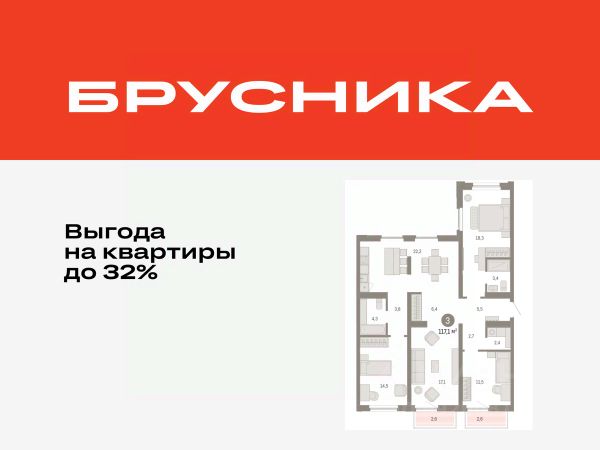 Спешите забронировать на этих условиях! Срок акции ограничен! Стоимость квартиры указана со скидкой, ваша экономия составит 3,740,000 RUB. Квартира в счёт первоначального взноса по программе обмена. По всем вопросам звоните в офис продаж, мы вам все подробно расскажем! Просторная 3-комн. квартира с предчистовой отделкой в ЖК "Зарека" на 9 этаже. Общая площадь: 117.05 кв.м. Высота потолков 2.7 м. Дом монолитный, многоподъездный, переменной этажности, от 6 до 16 этажей. Квартира находится во 2-й секции высотой 9 этажей в корпусе 5-2. На этаже 3 квартиры. В подъезде 1 пассажирский и 1 грузовой лифт. Окончание строительства - 4 квартал 2026 года. Оформление сделки по договору долевого участия. Квартира с кухней-гостиной и тремя спальнями в жилом районе "Зарека". Особенности планировки: разнесённые спальни, предчистовая отделка, мастер-спальня, постирочная, балкон. квартиры в нашей базе: ЗРК05.2-Ж2.9.1. Проект На планировочную структуру "Зареки" повлияла близость к автомобильному мосту Челюскинцев. Мы расположили жилые здания так, чтобы они постепенно удалялись от проезжей части. Приём напоминает лесенку: чем сильнее мост возвышается над участком застройки, тем дальше по отношению к нему стоят дома. Этот ступенчатый сдвиг позволил нам сформировать буфер между кварталами и оживлённой магистралью. Мы намерены высадить здесь высокие деревья и создать дополнительную защиту от дорожных шума и пыли. В границах нашего участка мы намерены разместить школу и два встроенных детских сада на 135 и 150 мест. Общественные пространства С севера на юг территорию будет пронизывать пешеходный бульвар. Мы мыслим это общественное пространство как главный центр притяжения. На нём будут сосредоточены основные детские игровые и спортивные зоны, места для встреч и спокойного отдыха. Он также сыграет роль мостика, ведущего к другим нашим проектам — "Европейскому кварталу" и "Дому у озера". Одна из базовых идей мастер-плана касается береговой линии. Сегодня озеленение этой территории носит стихииныи характер, а прямому доступу к Туре препятствует дамба. Мы хотим благоустроить пространства у воды и открыть их для людей. Архитекторы спроектировали систему многоярусных троп и спусков к реке, смотровые площадки и места для активного отдыха и пикников. #z5ceO7