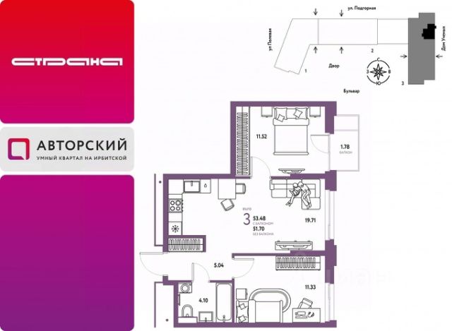 Новая квартира в ЖК "Авторский" напрямую от федерального застройщика "Страна Девелопмент". Продается 3комнатная квартира на 16 этаже от застройщика Страна Девелопмент. Площадь квартиры 51,7 кв. м. Жилой комплекс "Авторский" — квартал для авторов своей жизни от федерального застройщика "Страна Девелопмент" вблизи исторического центра — до Моста Влюблённых 4 минуты на авто, а ещё рядом ведущие вузы Тюмени. ПРЕИМУЩЕСТВА - Тематический бульвар объединяет дома и закрытые дворы квартала в единую экосистему: зелень, перголы для отдыха, детские и спортивные площадки. По вечерам бульвар преображается: освещение создаёт уютную атмосферу. - Новый детский сад рядом, который появится в 2026 году прямо в одном из корпусов комплекса. В нём выделено 150 мест для малышей. - Во дворах нет машин, шума, выхлопных газов и посторонних людей. Всё пространство разделено на зоны по интересам и возрастам. Для детей — игровые площадки из эко-материалов и мягкая защита от падений. Для взрослых — зоны отдыха, воркаут-площадки и тропинки для неспешных прогулок. ОТДЕЛКА Квартиры сдаются с предчистовой отделкой: произведена разводка электричества и отопления, выполнена стяжка пола, стены выровнены "под маяк", установлены розетки, выключатели и радиаторы. ДИЗАЙНЕРСКАЯ ОТДЕЛКА При покупке квартиры в ЖК "Авторский" можно включить стоимость ремонта в ипотеку. Пять вариантов на выбор: хлопковая нить, серый шторм, белый камень, шалфей, голубой вереск. СПОСОБЫ ПОКУПКИ Сотрудники "Страна Девелопмент" будут сопровождать вас на каждом этапе сделки, помогут получить одобрение по ипотеке или снизить ежемесячный платеж. - ипотека - рассрочка - с использованием материнского капитала -100% оплата наличными Цены на квартиры указаны без учета скидок. На консультации менеджер подскажет, какие акции действуют, и как получить одобрение по ипотеке с низкой ставкой.