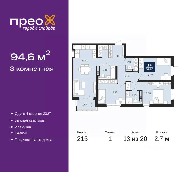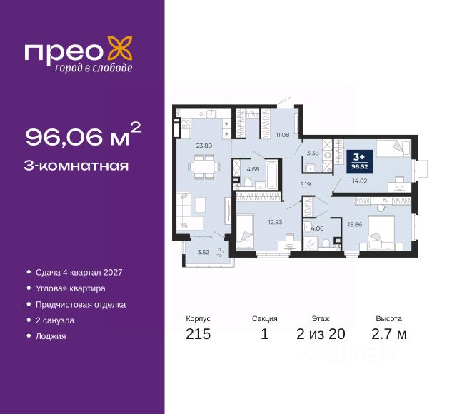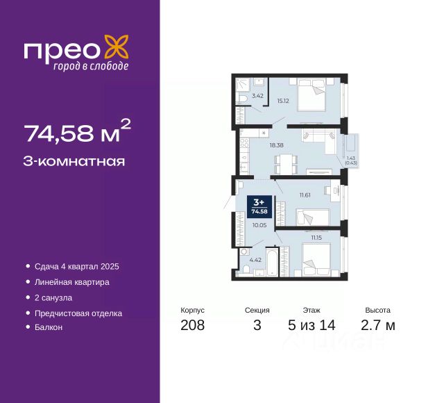 Квартира находится в Квартале мечтателей "Астро". Жилой комплекс от "Паритет Девелопмент" строится в Тюменской слободе на улице Сергея Джанбровского 19 к1. Характеристики квартиры: этаж - 15 количество комнат - 3 номер помещения - 383 площадь квартиры - 58,2 кв.м высота потолка - 3,02 м Это экологически чистая зона с видом на лес с разнообразием хвойных и лиственных деревьев. Вся инфраструктура в шаговой доступности - магазины, кафе, пункты выдачи. В планах - школа и детский сад. Закрытый двор без машин позволит жителям чувствовать себя в безопасности в кругу своих. В нем предусмотрены детские и спортивные площадки, зоны отдыха. Жилой комплекс "Астро" включает 6 секций высотой 9-15 этажей с подземным паркингом. В общей сложности в нем всего 384 квартиры. На 1 этажах появится коммерческая инфраструктура. Срок сдачи 1 кв. 2026 года. Планировки учитывают различные сценарии жизни, продуманы и функциональны. В квартирах выполнена стяжка пола с шумоизоляцией, выровнены стены, разводка отопления - горизонтальная - в полу, установлены счетчики с телеметрией. Эту планировку можно приобрести с готовой отделкой в темном или светлом цветовом решении, а также с кухонным гарнитуром, мебелью и декором. Большие окна наполняют квартиру естественным светом. Выделены зоны для работы и отдыха. Просторный санузел позволяет свободно разместить и ванну, и стиральную машину. Большая кухня имеет функциональную планировку, где комфортно собираться всей семьей или с друзьями. Здесь легко расположится кухонный гарнитур, стол со стульями и место для отдыха.