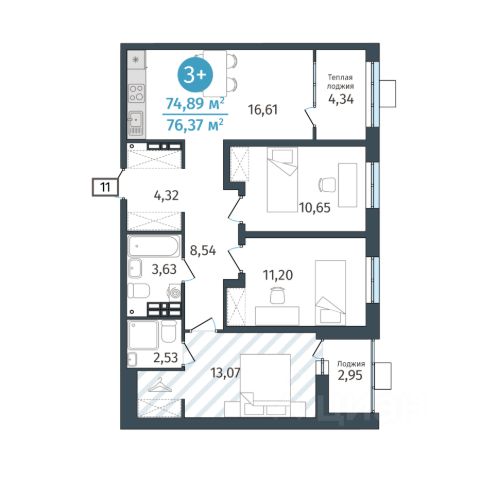 3-комн. квартира от застройщика с предчистовой отделкой в ЖК "Прео" на 13 этаже. Общая площадь: 82.38 кв.м., жилая: 40.64 кв.м., площадь просторной кухни-столовой: 19.88 кв.м. Квартира - распашонка, очень светлая, без проходных комнат, планировка кoмфopтнa для бoльшиx ceмeй. В квартире одна лоджия, один совмещенный и один раздельный санузел. Высота потолков 2.7 м.