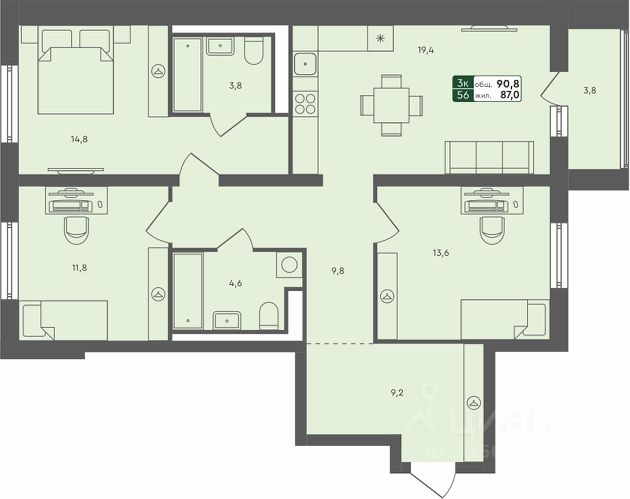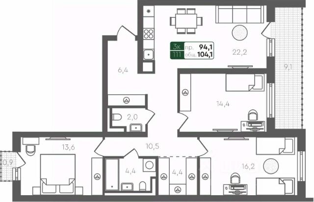 Продаётся 3-комнатная квартира в строящемся доме (ГП-4 (Березовая, 1)), срок сдачи: II-кв. 2027, общей площадью 84.3 кв.м., на 4 этаже. Проект в формате "Дома не выше сосен" отражает синтез великолепной архитектуры, престижной инфраструктуры и разумной стоимости. Жилье повышенного качества по доступной цене городского типа (квартиры), таунхаусы и индивидуальные дома с земельными участками характеризуются высокой транспортной доступностью исторического Тобольского тракта и формируют гармоничную и экологичную среду для комфортного проживания. Неповторимый архитектурный облик, выполненный с уважением и вниманием к природному ландшафту. Малоэтажные дома до 4 этажей соразмерны деревьям и не скрывают кромку леса. В квартирах с террасами и панорамными окнами наслаждаться окружающими пейзажами будет еще приятнее. В жилом комплексе предлагаются более 40 планировочных решений, включая особые форматы квартир. "Ритмы" - это. Нет ни одного предложения исключительный синтез современного жилья и загородного образа жизни: - функциональные по площади объекты - авторская архитектура российского архитектурного бюро "А.Лен" - индивидуальные фасады и атмосфера небольшого уютного европейского пригорода - качественное благоустройство - развитая инфраструктура - высокая транспортная доступность - хорошая экология