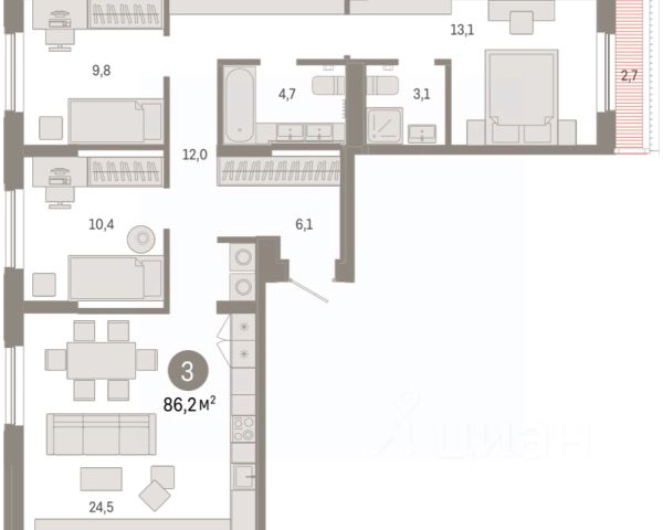Продается 3-комн. квартира от застройщика с предчистовой отделкой в ЖК "Республики 205" на 9 этаже. Общая площадь: 88.52 кв.м. Высота потолков 2.7 м. Купить квартиру можно с помощью программ покупки от застройщика Брусника: - ипотека по эксклюзивной ставке с помощью в получении положительного кредитного решения через сервис ипотечный брокер; - квартиры в рассрочку без процентов от застройщика Брусника; - обмен квартиры на новую. Получить одобрение ипотеки или рассрочку, а также осуществить обмен квартир можно онлайн. Дом монолитный, многоподъездный, переменной этажности, от 7 до 25 этажей. Квартира находится в 7-й секции высотой 9 этажей в корпусе 3-1. На этаже 7 квартир. В подъезде 1 пассажирский и 1 грузовой лифт. Окончание строительства - 1 квартал 2027 года. Оформление сделки по договору долевого участия. Район Проект расположен в границах улиц Пермякова, Энергетиков, Воровского и Республики. До центра города — 10 минут на машине. Рядом — автомобильная развязка на пересечении улиц Пермякова и Республики. В шаговой доступности есть школы, детские сады, поликлиники, крупный торговый центр, автовокзал и несколько скверов. Проект "Республики 205" — это проект комплексного развития территории, уникальный по своему наполнению. Переосмысляя бывшую территорию завода медицинского оборудования, мы создадим новое место силы — микрорайон, насыщенный деловой, развлекательной, рекреационной, игровой, образовательной и медицинской инфраструктурой. До каждого полезного сервиса здесь можно будет дойти за 15 минут. Локальными центрами "Республики 205" будут общественные пространства — скверы, парки, бульвары и площади. В границах нашего участка мы намерены разместить школу, рассчитанную на 1550 учеников, два детских сада на 300 мест и встроенный детский сад на 100 мест. В одном из цехов бывшего завода расположится креативный кластер "Кузница". Он станет площадкой для нескольких институций — галереи, лектория, книжного магазина-библиотеки, кинобара и точек креативного pop-up-ритейла. Пешеходные бульвары внутри района соединят между собой улицу ресторанов, детские и спортивные площадки, событийную площадь и летний кинотеатр. Идентификатор квартиры по базе застройщика: РСП03. #ZMAwmF