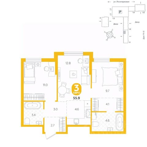 Квартира располагается в ГК "Чистые Пруды" от "Паритет девелопмент". Это флагманский проект компании в Тюмени. Расположение вдали от шумных улиц и оживленного центра создает ощущение жизни на природе и окружает тишиной и спокойствием. Есть вся необходимая социальная и коммерческая инфраструктура: магазины и сфера услуг на первых этажах. Школы, сады, поликлиника, парки в шаговой доступности. Квартал строится в районе Новой Лесобазы. Рядом выезд на объездную, что существенно экономит время. Поездка до центра города на автомобиле занимает 15-20 минут. Городские кварталы "Чистые Пруды" сформирован из домов переменной этажности и многоуровневых паркингов. Ввод 1 очереди строительства запланирован на II кв. 2028 года. Всё благоустройство квартала представлено двумя функциональными зонами: приватная внутри дворовая и общественная. Каждый закрытый двор имеет выход на единую променадную зону - бульвар. Концепция благоустройства основана на принципе модульности, что формирует основную идею приватности. Приватность проекта подчеркивает его особенный климат внутри. Модульное благоустройство позволит максимально эффективно использовать пространство двора и удовлетворить потребности различных категорий жителей. В квартирах базово выполнена улучшенная черновая отделка, которая включает в себя: выровненные стены, стяжка пола с шумоизоляцией, горизонтальная разводка отопления, установлены счетчики с телеметрией, окна с 5-камерным профилем и надежные входные двери. При желании можно добавить ремонт от застройщика и включить его в стоимость ипотеки, что позволит сэкономить на стройматериалах и переехать сразу после получения ключей. Характеристики квартиры: этаж - 1 количество комнат - 3 номер помещения - 2 площадь квартиры - 55,9 кв.мГармоничные пропорции и большие окна наполняют пространство светом, создавая уютную атмосферу. Умное зонирование позволяет удобно организовать как рабочую, так и жилую зоны, что особенно важно для современных жителей. Санузел спроектирован с учетом всех потребностей: здесь есть ванна и место для стиральной машины. Каждый метр квартиры используется с максимальной эффективностью, что делает эту планировку отличным выбором для тех, кто ценит комфорт и удобство.