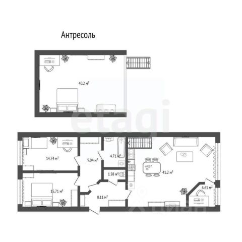 • Просторная кухня-гостиная, идеально подходящая для семейных вечеров и встреч с друзьями.