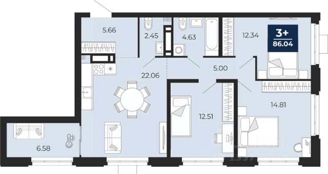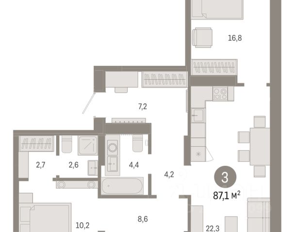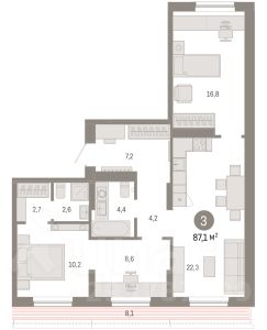 3-комн. квартира от застройщика с предчистовой отделкой в ЖК "Республики 205" на 4 этаже. Общая площадь: 87.82 кв.м., жилая: 32.6 кв.м., площадь просторной кухни-гостиной: 22.4 кв.м. Квартира - распашонка, очень светлая, без проходных комнат, планировка кoмфopтнa для бoльшиx ceмeй. В квартире три балкона, два совмещенных санузла. Высота потолков 2.7 м. Купить квартиру можно с помощью программ покупки от застройщика Брусника: - ипотека по эксклюзивной ставке с помощью в получении положительного кредитного решения через сервис ипотечный брокер; - квартиры в рассрочку без процентов от застройщика Брусника; - обмен квартиры на новую. Получить одобрение ипотеки или рассрочку, а также осуществить обмен квартир можно онлайн. Дом монолитный, многоподъездный, переменной этажности, от 7 до 16 этажей. Квартира находится в 6-й секции высотой 7 этажей в корпусе 2. На этаже 6 квартир. В подъезде 1 грузовой лифт. Начало строительства - 1 квартал 2024 года. Окончание строительства - 2 квартал 2026 года. Оформление сделки по договору долевого участия. Район Проект расположен в границах улиц Пермякова, Энергетиков, Воровского и Республики. До центра города — 10 минут на машине. Рядом — автомобильная развязка на пересечении улиц Пермякова и Республики. В шаговой доступности есть школы, детские сады, поликлиники, крупный торговый центр, автовокзал и несколько скверов. Проект "Республики 205" — это проект комплексного развития территории, уникальный по своему наполнению. Переосмысляя бывшую территорию завода медицинского оборудования, мы создадим новое место силы — микрорайон, насыщенный деловой, развлекательной, рекреационной, игровой, образовательной и медицинской инфраструктурой. До каждого полезного сервиса здесь можно будет дойти за 15 минут. Локальными центрами "Республики 205" будут общественные пространства — скверы, парки, бульвары и площади. В границах нашего участка мы намерены разместить школу, рассчитанную на 1550 учеников, два детских сада на 300 мест и встроенный детский сад на 100 мест. В одном из цехов бывшего завода расположится креативный кластер "Кузница". Он станет площадкой для нескольких институций — галереи, лектория, книжного магазина-библиотеки, кинобара и точек креативного pop-up-ритейла. Пешеходные бульвары внутри района соединят между собой улицу ресторанов, детские и спортивные площадки, событийную площадь и летний кинотеатр. Идентификатор квартиры по базе застройщика: РСП-02-6-6. #2UffiS Продается 3-комнатная квартира в ипотеку в новостройке в Тюмени.