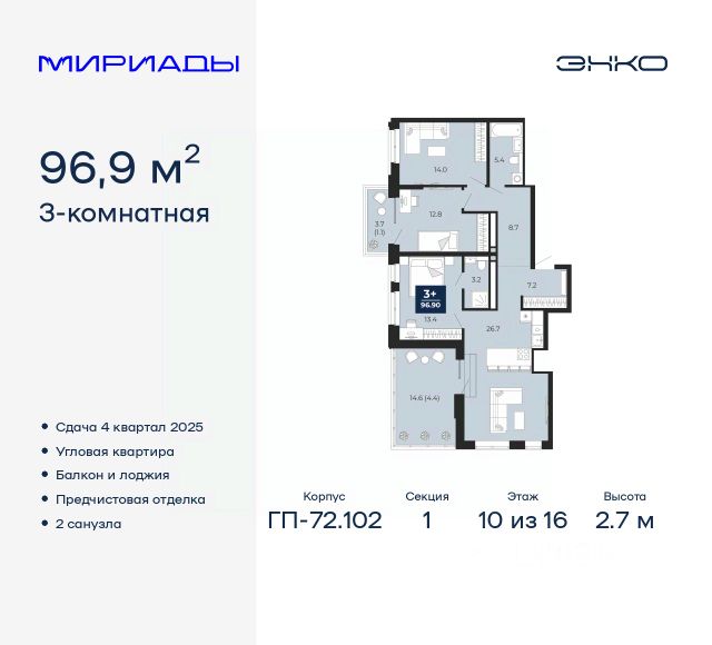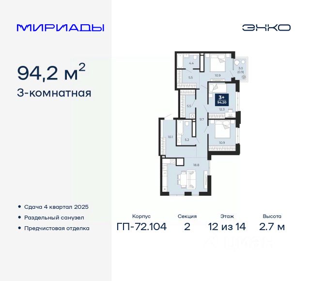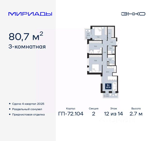 Квартира в счёт первоначального взноса по программе обмена. По всем вопросам обращайтесь в офис продаж, наши менеджеры вам все расскажут! 3-комн. квартира с предчистовой отделкой в ЖК "Республики 205" на 6 этаже. Общая площадь: 87.82 кв.м., жилая: 32.6 кв.м., площадь просторной кухни-гостиной: 22.4 кв.м. Квартира - распашонка, без проходных комнат, окна выходят на paзные стороны дома. В квартире три балкона, два совмещенных санузла. Высота потолков 2.7 м. Купить квартиру можно с помощью программ покупки от застройщика Брусника: - ипотека по эксклюзивной ставке с помощью в получении положительного кредитного решения через сервис ипотечный брокер; - квартиры в рассрочку без процентов от застройщика Брусника; - обмен квартиры на новую. Получить одобрение ипотеки или рассрочку, а также осуществить обмен квартир можно онлайн. Дом монолитный, многоподъездный, переменной этажности, от 7 до 16 этажей. Квартира находится в 6-й секции высотой 7 этажей в корпусе 2. На этаже 6 квартир. В подъезде 1 грузовой лифт. Начало строительства - 1 квартал 2024 года. Окончание строительства - 1 квартал 2026 года. Оформление сделки по договору долевого участия. Район Проект расположен в границах улиц Пермякова, Энергетиков, Воровского и Республики. До центра города — 10 минут на машине. Рядом — автомобильная развязка на пересечении улиц Пермякова и Республики. В шаговой доступности есть школы, детские сады, поликлиники, крупный торговый центр, автовокзал и несколько скверов. Проект "Республики 205" — это проект комплексного развития территории, уникальный по своему наполнению. Переосмысляя бывшую территорию завода медицинского оборудования, мы создадим новое место силы — микрорайон, насыщенный деловой, развлекательной, рекреационной, игровой, образовательной и медицинской инфраструктурой. До каждого полезного сервиса здесь можно будет дойти за 15 минут. Локальными центрами "Республики 205" будут общественные пространства — скверы, парки, бульвары и площади. В границах нашего участка мы намерены разместить школу, рассчитанную на 1550 учеников, два детских сада на 300 мест и встроенный детский сад на 100 мест. В одном из цехов бывшего завода расположится креативный кластер "Кузница". Он станет площадкой для нескольких институций — галереи, лектория, книжного магазина-библиотеки, кинобара и точек креативного pop-up-ритейла. Пешеходные бульвары внутри района соединят между собой улицу ресторанов, детские и спортивные площадки, событийную площадь и летний кинотеатр. Идентификатор квартиры по базе застройщика: РСП-02-6-6. #zUFFZ6 Купить 3-комнатную квартиру в новостройке с отделкой в округе Ленинский в городе Тюмень.
