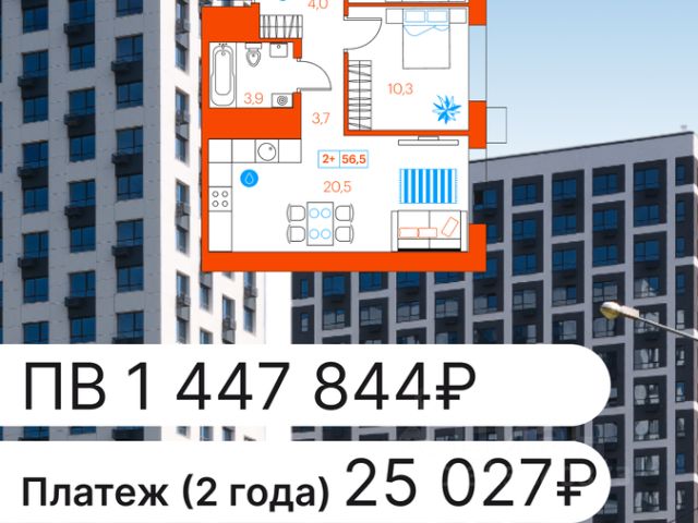 Продаётся 2-комнатная квартира в строящемся доме (ГП-4), срок сдачи: IV-кв. 2027, общей площадью 62.42 кв.м., на 14 этаже. Расположение, транспортная доступность