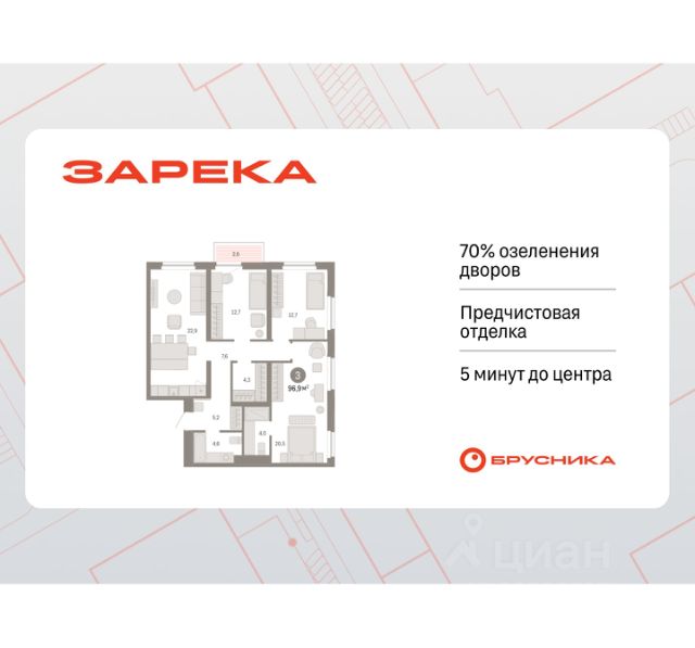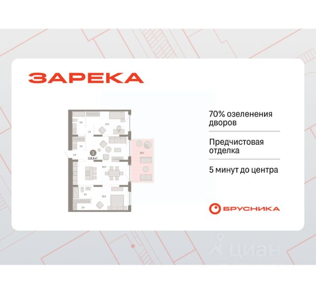 Квартира в счёт первоначального взноса по программе обмена. Информация по телефону, наши менеджеры вам все расскажут! Продается трехкомнатная квартира от застройщика с предчистовой отделкой в ЖК "Зарека" на 13 этаже. Общая площадь: 115.7 кв.м. Высота потолков 2.7 м. Квартира находится в корпусе 5-1. Дом монолитный, одноподъездный, высотой 25 этажей. На этаже 12 квартир. В подъезде 2 пассажирских и 1 грузовой лифт. Окончание строительства - 1 квартал 2027 года. Оформление сделки по договору долевого участия. Продаётся с паркингом. Квартира с кухней-гостиной и тремя спальнями в жилом районе "Зарека". Особенности планировки: гардеробная, предчистовая отделка, терраса на крыше. квартиры в нашей базе: ЗРК05.1-Ж1.13.7. Проект На планировочную структуру "Зареки" повлияла близость к автомобильному мосту Челюскинцев. Мы расположили жилые здания так, чтобы они постепенно удалялись от проезжей части. Приём напоминает лесенку: чем сильнее мост возвышается над участком застройки, тем дальше по отношению к нему стоят дома. Этот ступенчатый сдвиг позволил нам сформировать буфер между кварталами и оживлённой магистралью. Мы намерены высадить здесь высокие деревья и создать дополнительную защиту от дорожных шума и пыли. В границах нашего участка мы намерены разместить школу и два встроенных детских сада на 135 и 150 мест. Общественные пространства С севера на юг территорию будет пронизывать пешеходный бульвар. Мы мыслим это общественное пространство как главный центр притяжения. На нём будут сосредоточены основные детские игровые и спортивные зоны, места для встреч и спокойного отдыха. Он также сыграет роль мостика, ведущего к другим нашим проектам — "Европейскому кварталу" и "Дому у озера". Одна из базовых идей мастер-плана касается береговой линии. Сегодня озеленение этой территории носит стихииныи характер, а прямому доступу к Туре препятствует дамба. Мы хотим благоустроить пространства у воды и открыть их для людей. Архитекторы спроектировали систему многоярусных троп и спусков к реке, смотровые площадки и места для активного отдыха и пикников. #2s8otw Продается 3-комнатная квартира в новостройке с отделкой в микрорайоне Зарека в городе Тюмень.