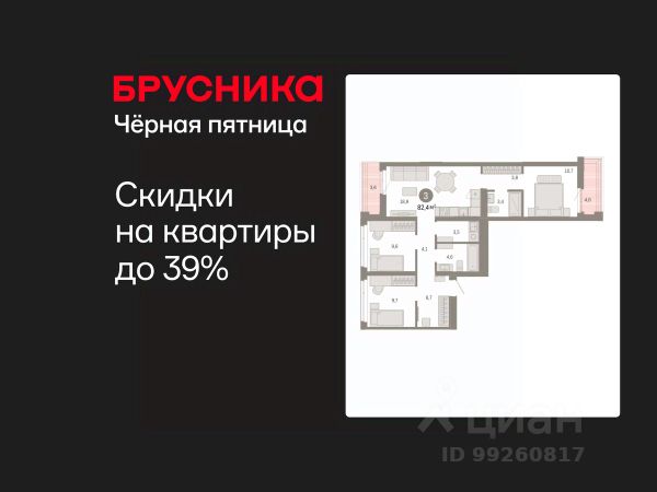 Квартира в счёт первоначального взноса по программе обмена. По всем вопросам обращайтесь в офис продаж, наши менеджеры вам все расскажут! 3-комн. квартира с предчистовой отделкой в ЖК "Республики 205" на 6 этаже. Общая площадь: 87.82 кв.м., жилая: 32.6 кв.м., площадь просторной кухни-гостиной: 22.4 кв.м. Квартира - распашонка, без проходных комнат, окна выходят на paзные стороны дома. В квартире три балкона, два совмещенных санузла. Высота потолков 2.7 м. Купить квартиру можно с помощью программ покупки от застройщика Брусника: - ипотека по эксклюзивной ставке с помощью в получении положительного кредитного решения через сервис ипотечный брокер; - квартиры в рассрочку без процентов от застройщика Брусника; - обмен квартиры на новую. Получить одобрение ипотеки или рассрочку, а также осуществить обмен квартир можно онлайн. Дом монолитный, многоподъездный, переменной этажности, от 7 до 16 этажей. Квартира находится в 6-й секции высотой 7 этажей в корпусе 2. На этаже 6 квартир. В подъезде 1 грузовой лифт. Начало строительства - 1 квартал 2024 года. Окончание строительства - 1 квартал 2026 года. Оформление сделки по договору долевого участия. Район Проект расположен в границах улиц Пермякова, Энергетиков, Воровского и Республики. До центра города — 10 минут на машине. Рядом — автомобильная развязка на пересечении улиц Пермякова и Республики. В шаговой доступности есть школы, детские сады, поликлиники, крупный торговый центр, автовокзал и несколько скверов. Проект "Республики 205" — это проект комплексного развития территории, уникальный по своему наполнению. Переосмысляя бывшую территорию завода медицинского оборудования, мы создадим новое место силы — микрорайон, насыщенный деловой, развлекательной, рекреационной, игровой, образовательной и медицинской инфраструктурой. До каждого полезного сервиса здесь можно будет дойти за 15 минут. Локальными центрами "Республики 205" будут общественные пространства — скверы, парки, бульвары и площади. В границах нашего участка мы намерены разместить школу, рассчитанную на 1550 учеников, два детских сада на 300 мест и встроенный детский сад на 100 мест. В одном из цехов бывшего завода расположится креативный кластер "Кузница". Он станет площадкой для нескольких институций — галереи, лектория, книжного магазина-библиотеки, кинобара и точек креативного pop-up-ритейла. Пешеходные бульвары внутри района соединят между собой улицу ресторанов, детские и спортивные площадки, событийную площадь и летний кинотеатр. Идентификатор квартиры по базе застройщика: РСП-02-6-6. #zUFFZ6