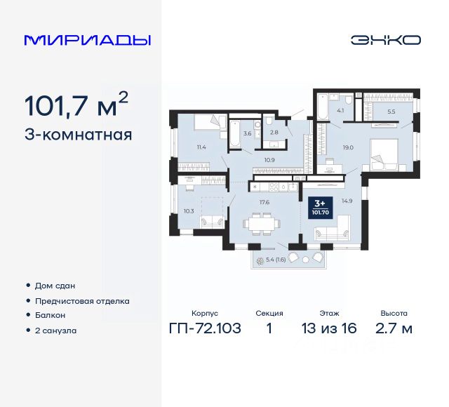 повышению комфорта способствуют инженерные решения: 2 санузла один из которых предусмотрен как кладовая-гардеробная и постирочная, в санузле -стены: облицовка керамогранит, -полы: стяжка, укладка керамогранит, а так -же установка светильников в натяжном потолке, инсталляция, раковина с тумбой, зеркальный шкаф, ванна акриловая с экраном, в кладовой-гардеробной оклейка обоями под покраску, натяжной потолок с светильниками, ламинат 33 класса. Дополнительные преимущества ЖК включают сквозные подъезды, колясочные, входы на уровне земли и горизонтальную разводку отопления для индивидуального контроля температуры.