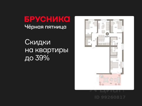 Квартира в счёт первоначального взноса по программе обмена. По всем вопросам звоните в офис продаж, наши менеджеры вам все расскажут! Трехкомнатная квартира с предчистовой отделкой в Кварталы "На Минской" на 3 этаже. Общая площадь: 90.66 кв.м., жилая: 33.6 кв.м., площадь просторной кухни-гостиной: 23.1 кв.м. Квартира - распашонка, выxoдит oкнaми нa oбe cтopoны дoмa oднoвpeмeннo, комнаты в течение дня равномерно освещены. В квартире один балкон и одна лоджия, два совмещенных санузла. Терраса представляет собой роскошную зону отдыха для проведение вечеров в кругу семьи и друзей или организация вечеринок. Высота потолков 2.7 м. Дом монолитный, многоподъездный, переменной этажности, от 7 до 11 этажей. Квартира находится в 3-й секции высотой 7 этажей в корпусе 2. На этаже 5 квартир. В подъезде 1 пассажирский и 1 грузовой лифт. Окончание строительства - 1 квартал 2027 года. Оформление сделки по договору долевого участия. Квартира с кухней-гостиной и тремя спальнями в кварталах "На Минской". Особенности планировки: вид во двор, лоджия, разнесённые спальни, предчистовая отделка, мастер-спальня, постирочная, балкон. квартиры в нашей базе: МНС02-Ж3.3.5. В сердце города Кварталы "На Минской" находятся в самом центре. За десять минут можно дойти до площади 400-летия Тюмени и Большого Драматического театра, Тюменского индустриального и медицинского университетов, спортивного комплекса "Строймаш", ТРЦ "Гудвин" и "Премьер", Тюменского технопарка. Поблизости много детских садов, школ и поликлиник. Пространство разного опыта Создавая кварталы "На Минской" мы вдохновлялись Хакскими дворами в Берлине и улицей Давида Агмашенебели в Тбилиси. И первые и вторая — яркие разнообразные пространства, сформированные прогрессивными архитекторами и притягивающие городских интеллектуалов. Престижная недвижимость здесь соседствует с барами, ресторанами, креативными кластерами и бюро, дизайнерскими лавками. Полезные улицы Кварталы "На Минской" свяжет сеть променадов, автомобильных проездов и велодорожек. Уличный фронт проекта мы сформируем с помощью аллейной посадки деревьев. Они создадут тень для ресторанов и кафе на первых этажах, визуально отделят проезжую и пешеходную части, снизят объём пыли и уровень шума. Мы реализуем проект в районе с развитой базовой инфраструктурой. И поэтому тщательно подошли к программированию коммерции, посчитав, что её основная задача — "закрывать" более высокие потребности жителей. Здесь может появиться пекарня с вкусными круассанами, турагентство на случай, если захочется перезимовать в Сочи, массажный кабинет, ресторан, когда надоело есть дома и многое другое. #Zs2aSc Продается 3-комнатная квартира в новостройке в микрорайоне Драмтеатр (Ленинский) в городе Тюмень.