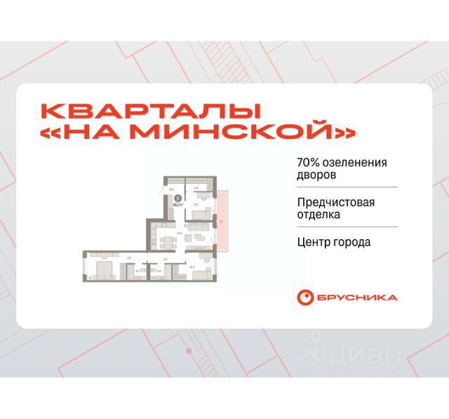 Квартира в счёт первоначального взноса по программе обмена. Звоните, мы вам все подробно расскажем! Просторная трехкомнатная квартира с предчистовой отделкой в Кварталы "На Минской" на 5 этаже. Общая площадь: 93.91 кв.м., жилая: 34.2 кв.м., площадь просторной кухни-гостиной: 22.7 кв.м. Квартира - распашонка, без проходных комнат, окна выходят на paзные стороны дома. В квартире два балкона, два совмещенных санузла. Терраса представляет собой роскошную зону отдыха, где вы на свой вкус можете создать атмосферу комфорта и уюта. Высота потолков 2.7 м. Дом монолитный, многоподъездный, переменной этажности, от 7 до 11 этажей. Квартира находится в 7-й секции высотой 7 этажей в корпусе 2. На этаже 5 квартир. В подъезде 1 пассажирский и 1 грузовой лифт. Окончание строительства - 1 квартал 2027 года. Оформление сделки по договору долевого участия. Квартира с кухней-гостиной и тремя спальнями в кварталах "На Минской". Особенности планировки: вид во двор, тёплая лоджия, разнесённые спальни, предчистовая отделка, мастер-спальня, постирочная, балкон. квартиры в нашей базе: МНС02-Ж7.5.5. В сердце города Кварталы "На Минской" находятся в самом центре. За десять минут можно дойти до площади 400-летия Тюмени и Большого Драматического театра, Тюменского индустриального и медицинского университетов, спортивного комплекса "Строймаш", ТРЦ "Гудвин" и "Премьер", Тюменского технопарка. Поблизости много детских садов, школ и поликлиник. Пространство разного опыта Создавая кварталы "На Минской" мы вдохновлялись Хакскими дворами в Берлине и улицей Давида Агмашенебели в Тбилиси. И первые и вторая — яркие разнообразные пространства, сформированные прогрессивными архитекторами и притягивающие городских интеллектуалов. Престижная недвижимость здесь соседствует с барами, ресторанами, креативными кластерами и бюро, дизайнерскими лавками. Полезные улицы Кварталы "На Минской" свяжет сеть променадов, автомобильных проездов и велодорожек. Уличный фронт проекта мы сформируем с помощью аллейной посадки деревьев. Они создадут тень для ресторанов и кафе на первых этажах, визуально отделят проезжую и пешеходную части, снизят объём пыли и уровень шума. Мы реализуем проект в районе с развитой базовой инфраструктурой. И поэтому тщательно подошли к программированию коммерции, посчитав, что её основная задача — "закрывать" более высокие потребности жителей. Здесь может появиться пекарня с вкусными круассанами, турагентство на случай, если захочется перезимовать в Сочи, массажный кабинет, ресторан, когда надоело есть дома и многое другое. #zs9V8A Продается 3-комнатная квартира в новостройке в микрорайоне Драмтеатр (Ленинский) в городе Тюмень.
