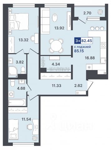 • ✓ В базе Циан 39 3-комнатных квартир в новостройке в жилом районе Гилевский в городе Тюмень