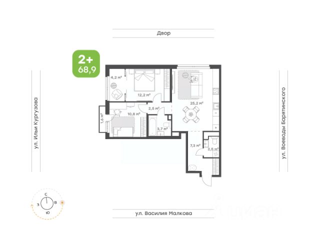 По внешнему контуру домов коммерческие помещения — всё необходимое будет в шаговой доступности от дома. Со стороны улицы Фармана Салманова спроектирован пешеходный бульвар с площадками для отдыха.