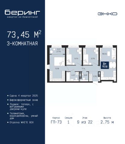 Просторная 3-комн. квартира с предчистовой отделкой в ЖК "Беринг" на 5 этаже. Общая площадь: 89.25 кв.м., жилая: 38.27 кв.м., площадь просторной кухни-столовой: 24.27 кв.м. Квартира угловая, очень светлая, естественная вентиляция при открытии окон. В квартире один балкон и одна лоджия, два совмещенных санузла. Высота потолков 2.72 м. Дом монолитный, черырехподъездный, переменной этажности, от 19 до 24 этажей. Квартира находится в 3-й секции высотой 24 этажа в корпусе ГП-76. На этаже 6 квартир. В подъезде 1 пассажирский и 1 грузовой лифт. Окончание строительства - 4 квартал 2027 года. Оформление сделки по договору долевого участия. Подобно знаменитому исследователю, мы чувствуем себя первооткрывателями этой локации. Хотим показать новую суть места, сформировать для вас жизненный опыт, которого ещё не было. Беринг — район зелёного цвета. Беринг — район, который откроется вам с другой стороны. Впечатлит новым уровнем комфорта и качеством жизни. Беринг — открытие на карте города. Первый квартал расположен в районе Тура, в границах улиц: Камчатская Западносибирская Энтузиастов. Вокруг уже есть всё для того, чтобы ежедневная рутина была лишь частью жизни и не доставляла дискомфорта. Школы и детские сады, магазины и аптеки, поликлиника, места для семейного отдыха, пеших и велопрогулок, и даже рыбалки. Масштабное озеленение дворов — визитная карточка ЭНКО и ваш оазис спокойствия, чтобы отвлечься от повседневности. Раскидистые деревья, кустарники, травы и цветы — осталось остановиться, вдохнуть и расслабиться, глядя на эту природную красоту. Стилистика подъездов продолжает концепцию Беринга, вдохновлённого Камчаткой: сдержанный, но при этом впечатляющий дизайн соседствует с удобством и функциональностью. #26g8u8 Купить 3-комнатную квартиру в новостройке в округе Ленинский в городе Тюмень.
