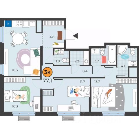 В квартирах выполнена качественная предчистовая отделка. Гладкие стены с финишным выравниванием по маякам. Ровный потолок для установки натяжного потолка. Установлены пятикамерные окна с двойным стеклопакетом (3 стекла).