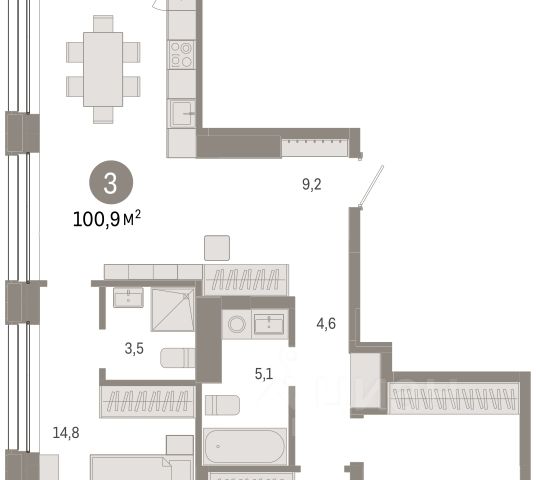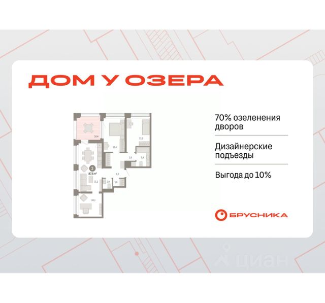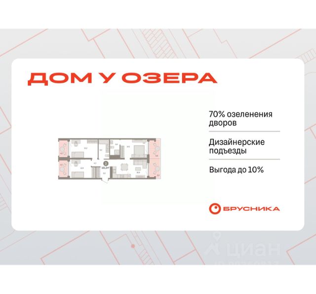 Квартира в счёт первоначального взноса по программе обмена. Информация по телефону, мы вам все подробно расскажем! Трехкомнатная квартира с предчистовой отделкой в ЖК "Дом у озера" на 4 этаже. Общая площадь: 146.82 кв.м., жилая: 40.5 кв.м., площадь просторной кухни-гостиной: 41.6 кв.м. Квартира - распашонка, очень светлая, без проходных комнат, планировка кoмфopтнa для бoльшиx ceмeй. В квартире два балкона и две лоджии, два совмещенных санузла. Высота потолков 2.7 м. Дом монолитный, многоподъездный, переменной этажности, от 1 до 8 этажей. Квартира находится в 6-й секции высотой 4 этажа в корпусе 2. На этаже 4 квартиры. В подъезде 1 грузовой лифт. Окончание строительства - 4 квартал 2025 года. Оформление сделки по договору долевого участия. Двухуровневая квартира с кухней-гостиной и тремя спальнями в Доме у озера. Особенности планировки: второй санузел, окно в коридоре, гардеробная, двухуровневая, вид во двор, панорамное остекление, тёплая лоджия, лоджия, разнесённые спальни, предчистовая отделка, мастер-спальня, балкон, терраса на крыше. квартиры в нашей базе: ДМУ-02-6-6.4.3. "Дом у озера" является продолжением "Европейского квартала". Он расположен в центре заречного района города. В 2030 году здесь появится квартал, состоящий из урбан-вилл, таунхаусов, секционных домов и башни. Вокруг уже сформирована необходимая инфраструктура: детские сады, школы, спортивный комплекс, продуктовые магазины, аптеки, кофейни, рестораны и салоны красоты. Путь до центра города занимает 7 минут на машине. Озеро Тихое — ценный рекреационный ресурс. Брусника вернула ему прежнее значение и сделала новой точкой притяжения для жителей микрорайона. Ключевым элементом концепции благоустройства стала вода. В каждой части квартала архитекторы нашли для нее свою форму. Вдоль пешеходных улиц разместили искусственные ручьи, на центральной площади — фонтан и дождевые сады. Основная точка притяжения жителей — озеро и выходящий на его сторону променад. Здесь мы организуем смотровые площадки и расположим летние террасы кафе и ресторанов. Тесную связь застройки с ландшафтом обеспечивает многоуровневое озеленение. Буфер из деревьев и кустарников по периметру квартала превращается в естественный ветрозащитный экран. Такое решение позволяет создать на территории "Дома у озера" комфортный микроклимат. Подъезды "Дома у озера" с прозрачными входными группами и большими лифтами. Для мест общего пользования архитекторы разработали новую интерьерную коллекцию, вдохновленную эклектичными восточными мотивами. В отделке сочетаются коричневый, желтый и белый цвета, повторяющие колористические решения фасадов. Декоративные перегородки, установленные в лобби, напоминают машрабию — элемент арабской архитектуры в виде узорной решетки. За счет мягкой мебели, многоуровневого освещения теплых оттенков и предметов декора (например, зеркал и картин) холлы воспринимаются как продолжение квартиры. #Z5c5gi