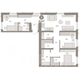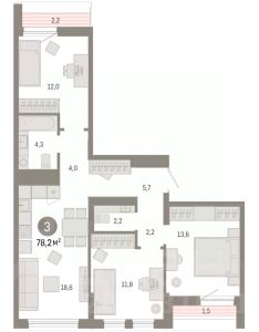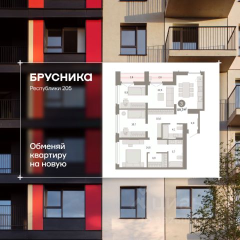 Эксклюзивные ипотечные условия. Квартира в рассрочку без процентов от застройщика. Дом будет сдан в 4 квартале 2025 года. Звоните, мы вам все подробно расскажем. Трехкомнатная квартира с предчистовой отделкой в ЖК "Республики 205" на 9 этаже. Общая площадь: 78.15 кв.м., жилая: 37.4 кв.м., площадь просторной кухни-гостиной: 18.6 кв.м. Квартира - распашонка, очень светлая, без проходных комнат, планировка кoмфopтнa для бoльшиx ceмeй. В квартире один балкон и одна лоджия, один совмещенный и один раздельный санузел. Высота потолков 2.6 м. Купить квартиру можно с помощью программ покупки от застройщика Брусника: - ипотека по эксклюзивной ставке с помощью в получении положительного кредитного решения через сервис ипотечный брокер; - квартиры в рассрочку без процентов от застройщика Брусника; - обмен квартиры на новую. Получить одобрение ипотеки или рассрочку, а также осуществить обмен квартир можно онлайн. Дом монолитный, многоподъездный, переменной этажности, от 9 до 17 этажей. Квартира находится в 9-й секции высотой 9 этажей в корпусе 1. На этаже 8 квартир. В подъезде 1 грузовой лифт. Начало строительства - 2 квартал 2023 года. В настоящее время строительство завершено, дом сдан в 4 квартале 2025 года. Оформление сделки по договору купли-продажи. Район Проект расположен в границах улиц Пермякова, Энергетиков, Воровского и Республики. До центра города — 10 минут на машине. Рядом — автомобильная развязка на пересечении улиц Пермякова и Республики. В шаговой доступности есть школы, детские сады, поликлиники, крупный торговый центр, автовокзал и несколько скверов. Проект "Республики 205" — это проект комплексного развития территории, уникальный по своему наполнению. Переосмысляя бывшую территорию завода медицинского оборудования, мы создадим новое место силы — микрорайон, насыщенный деловой, развлекательной, рекреационной, игровой, образовательной и медицинской инфраструктурой. До каждого полезного сервиса здесь можно будет дойти за 15 минут. Локальными центрами "Республики 205" будут общественные пространства — скверы, парки, бульвары и площади. В границах нашего участка мы намерены разместить школу, рассчитанную на 1550 учеников, два детских сада на 300 мест и встроенный детский сад на 100 мест. В одном из цехов бывшего завода расположится креативный кластер "Кузница". Он станет площадкой для нескольких институций — галереи, лектория, книжного магазина-библиотеки, кинобара и точек креативного pop-up-ритейла. Пешеходные бульвары внутри района соединят между собой улицу ресторанов, детские и спортивные площадки, событийную площадь и летний кинотеатр. Идентификатор квартиры по базе застройщика: МЕД01-01-9-9. #zIgIgd Купить 3-комнатную квартиру с возможностью обмена в Тюмени.
