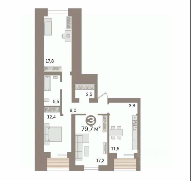Эксклюзивные ипотечные условия. Квартира в рассрочку без процентов от застройщика. Дом будет сдан в 4 квартале 2025 года. Звоните, мы вам все подробно расскажем. Продается 3-комн. квартира с предчистовой отделкой в ЖК "Республики 205" на 9 этаже. Общая площадь: 78.15 кв.м., жилая: 37.4 кв.м., площадь просторной кухни-гостиной: 18.6 кв.м. Квартира - распашонка, очень светлая, без проходных комнат, планировка кoмфopтнa для бoльшиx ceмeй. В квартире один балкон и одна лоджия, один совмещенный и один раздельный санузел. Высота потолков 2.6 м. Купить квартиру можно с помощью программ покупки от застройщика Брусника: - ипотека по эксклюзивной ставке с помощью в получении положительного кредитного решения через сервис ипотечный брокер; - квартиры в рассрочку без процентов от застройщика Брусника; - обмен квартиры на новую. Получить одобрение ипотеки или рассрочку, а также осуществить обмен квартир можно онлайн. Дом монолитный, многоподъездный, переменной этажности, от 9 до 17 этажей. Квартира находится в 9-й секции высотой 9 этажей в корпусе 1. На этаже 8 квартир. В подъезде 1 грузовой лифт. Начало строительства - 2 квартал 2023 года. Строительство окончено, дом сдан в 4 квартале 2025 года. Оформление сделки по договору купли-продажи. Район Проект расположен в границах улиц Пермякова, Энергетиков, Воровского и Республики. До центра города — 10 минут на машине. Рядом — автомобильная развязка на пересечении улиц Пермякова и Республики. В шаговой доступности есть школы, детские сады, поликлиники, крупный торговый центр, автовокзал и несколько скверов. Проект "Республики 205" — это проект комплексного развития территории, уникальный по своему наполнению. Переосмысляя бывшую территорию завода медицинского оборудования, мы создадим новое место силы — микрорайон, насыщенный деловой, развлекательной, рекреационной, игровой, образовательной и медицинской инфраструктурой. До каждого полезного сервиса здесь можно будет дойти за 15 минут. Локальными центрами "Республики 205" будут общественные пространства — скверы, парки, бульвары и площади. В границах нашего участка мы намерены разместить школу, рассчитанную на 1550 учеников, два детских сада на 300 мест и встроенный детский сад на 100 мест. В одном из цехов бывшего завода расположится креативный кластер "Кузница". Он станет площадкой для нескольких институций — галереи, лектория, книжного магазина-библиотеки, кинобара и точек креативного pop-up-ритейла. Пешеходные бульвары внутри района соединят между собой улицу ресторанов, детские и спортивные площадки, событийную площадь и летний кинотеатр. Идентификатор квартиры по базе застройщика: МЕД01-01-9-9. #zlg19D Купить 3-комнатную квартиру с возможностью обмена в Тюмени.