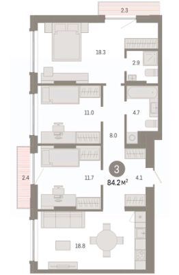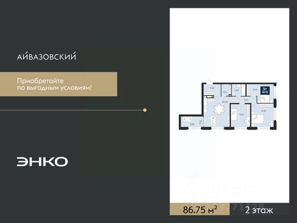 Продается 3-комн. квартира с предчистовой отделкой в ЖК "Мотивы" на 5 этаже. Общая площадь: 79.8 кв.м. Высота потолков 2.7 м.