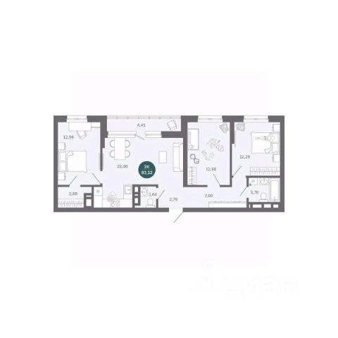 3-комн. квартира от застройщика с предчистовой отделкой в ЖК "Прео" на 14 этаже. Общая площадь: 95.89 кв.м. Высота потолков 2.7 м.