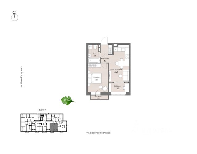 Дом монолитный, черырехподъездный, переменной этажности, от 14 до 21 этажей. Квартира находится во 2-й секции высотой 21 этаж в корпусе 211. На этаже 10 квартир. В подъезде 1 пассажирский и 1 грузовой лифт. Окончание строительства - 4 квартал 2026 года. Оформление сделки по договору долевого участия.
