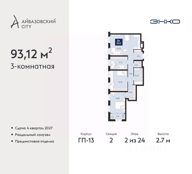 Квартира в счёт первоначального взноса по программе обмена. Информация по телефону, наши менеджеры вам все расскажут! Просторная трехкомнатная квартира с предчистовой отделкой в Кварталы "На Минской" на 3 этаже. Общая площадь: 90.66 кв.м., жилая: 33.6 кв.м., площадь просторной кухни-гостиной: 23.1 кв.м. Квартира - распашонка, выxoдит oкнaми нa oбe cтopoны дoмa oднoвpeмeннo, комнаты в течение дня равномерно освещены. В квартире один балкон и одна лоджия, два совмещенных санузла. Наличие в квартире террасы открывает возможность для создания зон отдыха в кругу семьи и друзей. Высота потолков 2.7 м. Дом монолитный, многоподъездный, переменной этажности, от 7 до 11 этажей. Квартира находится в 3-й секции высотой 7 этажей в корпусе 2. На этаже 5 квартир. В подъезде 1 пассажирский и 1 грузовой лифт. Окончание строительства - 1 квартал 2027 года. Оформление сделки по договору долевого участия. Квартира с кухней-гостиной и тремя спальнями в кварталах "На Минской". Особенности планировки: вид во двор, лоджия, разнесённые спальни, предчистовая отделка, мастер-спальня, постирочная, балкон. квартиры в нашей базе: МНС02-Ж3.3.5. В сердце города Кварталы "На Минской" находятся в самом центре. За десять минут можно дойти до площади 400-летия Тюмени и Большого Драматического театра, Тюменского индустриального и медицинского университетов, спортивного комплекса "Строймаш", ТРЦ "Гудвин" и "Премьер", Тюменского технопарка. Поблизости много детских садов, школ и поликлиник. Пространство разного опыта Создавая кварталы "На Минской" мы вдохновлялись Хакскими дворами в Берлине и улицей Давида Агмашенебели в Тбилиси. И первые и вторая — яркие разнообразные пространства, сформированные прогрессивными архитекторами и притягивающие городских интеллектуалов. Престижная недвижимость здесь соседствует с барами, ресторанами, креативными кластерами и бюро, дизайнерскими лавками. Полезные улицы Кварталы "На Минской" свяжет сеть променадов, автомобильных проездов и велодорожек. Уличный фронт проекта мы сформируем с помощью аллейной посадки деревьев. Они создадут тень для ресторанов и кафе на первых этажах, визуально отделят проезжую и пешеходную части, снизят объём пыли и уровень шума. Мы реализуем проект в районе с развитой базовой инфраструктурой. И поэтому тщательно подошли к программированию коммерции, посчитав, что её основная задача — "закрывать" более высокие потребности жителей. Здесь может появиться пекарня с вкусными круассанами, турагентство на случай, если захочется перезимовать в Сочи, массажный кабинет, ресторан, когда надоело есть дома и многое другое. #2s2aSC 3-комнатной квартиры первичка в Тюмени.