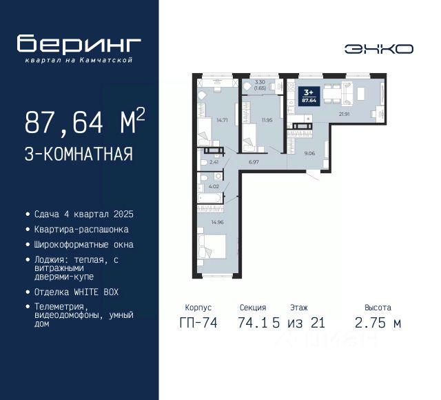 Продаётся квартира площадью 54.80 м2 в жилом комплексе "Айрис". Квартира находится на 3 этаже, жилая площадь квартиры 30.80 м2, площадь просторной кухни — 8.80 м2. Среди особенностей планировки — изолированные комнаты с окнами на одну сторону, 1 совмещённый санузел. Срок сдачи — III кв. 2027 Жилой комплекс "Айрис" — это: - фиджитал-квартал в Тюмени - дома высотой от 7 до 25 этажей - квартиры с системой "Умный дом" - цифровые технологии как элемент благоустройства Окружение В нескольких минутах ходьбы от дома — парк "Комарово" с волейбольной площадкой, открытым кинотеатром, зонами для барбекю и катком. Неподалеку от Airis находится центр иппотерапии, где можно покататься на лошадях и взять уроки верховой езды. На территории Airis появится собственный парк с прогулочными аллеями. Инфраструктура В 5-10 минутах от квартала открыты 2 детских сада и гимназия. На шопинг можно отправиться в торговые комплексы "Колумб" и "Кристалл" — они находятся недалеко от дома. Благоустройство Уютный двор — приватное пространство для жителей. В беседках можно будет почитать книгу в тишине, а в тени деревьев устроиться на пикник. На крыше многоуровневого паркинга будет лаунж-зона с кинотеатром, баскетбольная площадка и воркаут-пространство, где можно позаниматься с виртуальным тренером — достаточно отсканировать код. Лобби Интерьеры лобби выполнены в пастельных тонах с элементами фиджитал-решений. Для отдыха и ожидания гостей создана лаунж-зона. Также есть гостевые санузлы. Колясочные Возвращайтесь налегке после прогулки с малышом — оставить коляску можно в специальном помещении на первом этаже. Кладовые Для сезонных и габаритных вещей предусмотрены отдельные кладовые на цокольном этаже. В каждом помещении уже проведено электричество и выполнена стяжка пола. Паркинг На территории — два многоуровневых наземных паркинга. Один из них примыкает к домам — из него можно напрямую пройти в парадные. Планировки Планировки квартала — от компактной студии до сити-хауса с собственным палисадником — соответствуют любым жизненным сценариям. Можно выбрать квартиры с террасами и готовыми дизайнерскими интерьерами. Продам 3-комнатную квартиру первичка в Тюменской области.