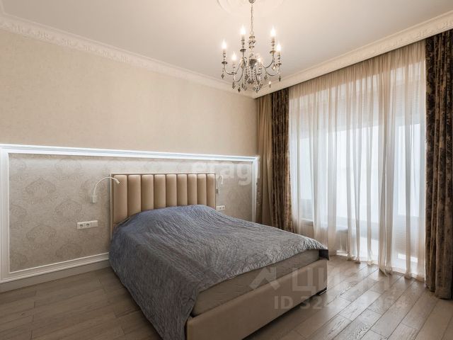 В спальне, гостиной и кабинете — бельгийский ковёр из натуральной шерсти, кожаная кровать и итальянские люстры из муранского стекла.