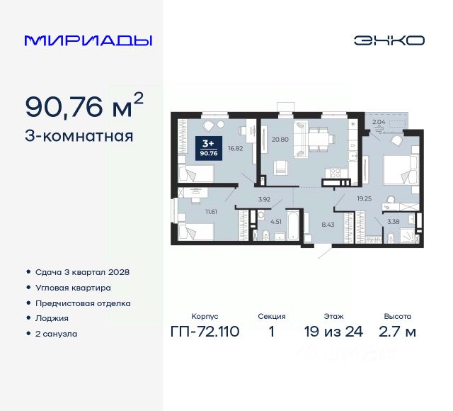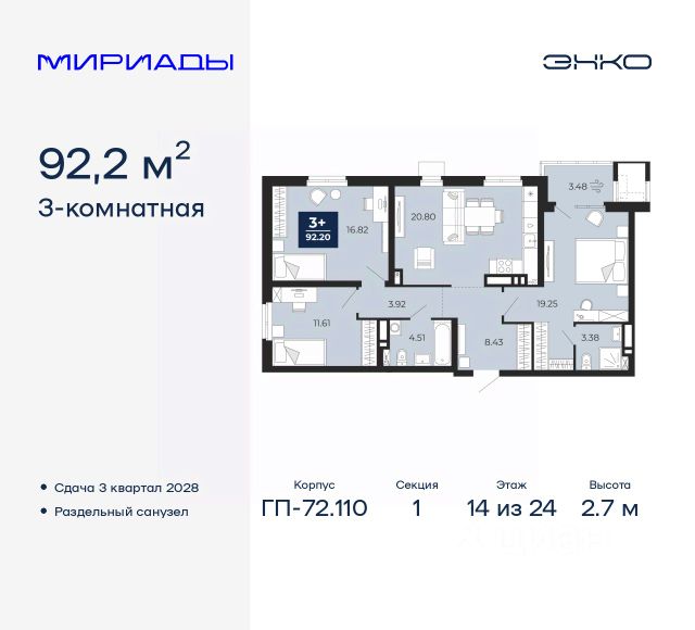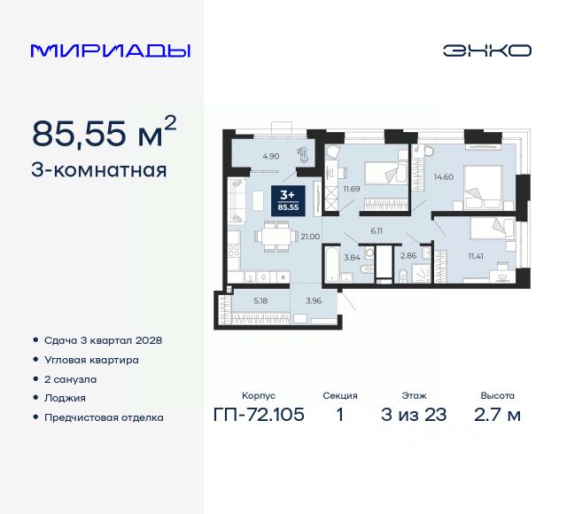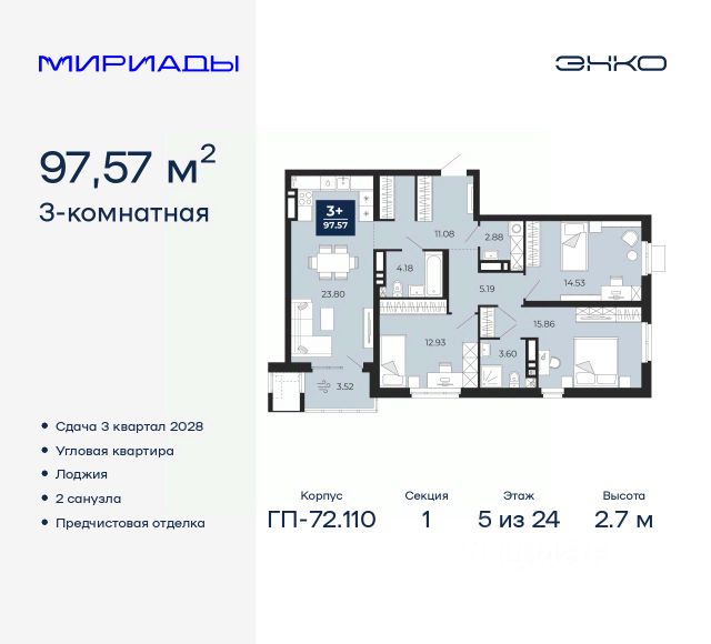Комфортные дома высотой от 17 до 24 этажей, приватные зеленые дворы, собственный спортивный парк. На первых этажах кафе и магазины.