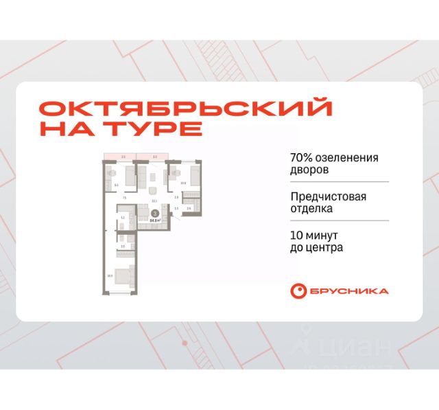 Квартира в счёт первоначального взноса по программе обмена. Квартира с кухней-гостиной и тремя спальнями в Октябрьском на Туре. Особенности планировки: второй санузел, гардеробная, предчистовая отделка, мастер-спальня, балкон. квартиры в нашей базе: ОКТ-10-1-1.3.4. Район Проект расположен на берегу реки, в одном из самых живописных и экологичных районов Тюмени. За последние годы облик района изменился. По соседству с индивидуальной застройкой выросли многоквартирные дома. При проектировании "Октябрьского на Туре" нашей приоритетной задачей стало сохранение природного ландшафта: мы постарались деликатно вписать в него современную архитектуру. Квартал удачно расположен с точки зрения дорожной инфраструктуры. На автомобиле путь до центра города составит 15 минут. Добраться до набережной и главных тюменских достопримечательностей можно и на общественном транспорте. В пешей доступности находится автобусная остановка. Проект По мастер-плану здесь будет восемь домов. Ядро застройки составляют замкнутые кварталы переменной этажности. Их высотность понижается по мере приближения к реке. На углах участка мы разместили башни-доминанты. Одной из достопримечательностей квартала станет парк на Туре — здесь появится зеленая зона протяженностью около 6 километров для пеших и велопрогулок. Смысловая ось квартала — широкая главная улица с высаженными вдоль неё высокими деревьями. Они создают тень и работают как шумо- и пылезащитные экраны. Это место сосредоточения основных пешеходных и транспортных потоков, на сторону которых мы ориентировали большинство коммерческих помещений. Отсюда жители могут свернуть на тихие соседские улицы и попасть на внутриквартальную площадь — ещё одну точку притяжения.Квартира в счёт первоначального взноса по программе обмена. #Zw1B4C